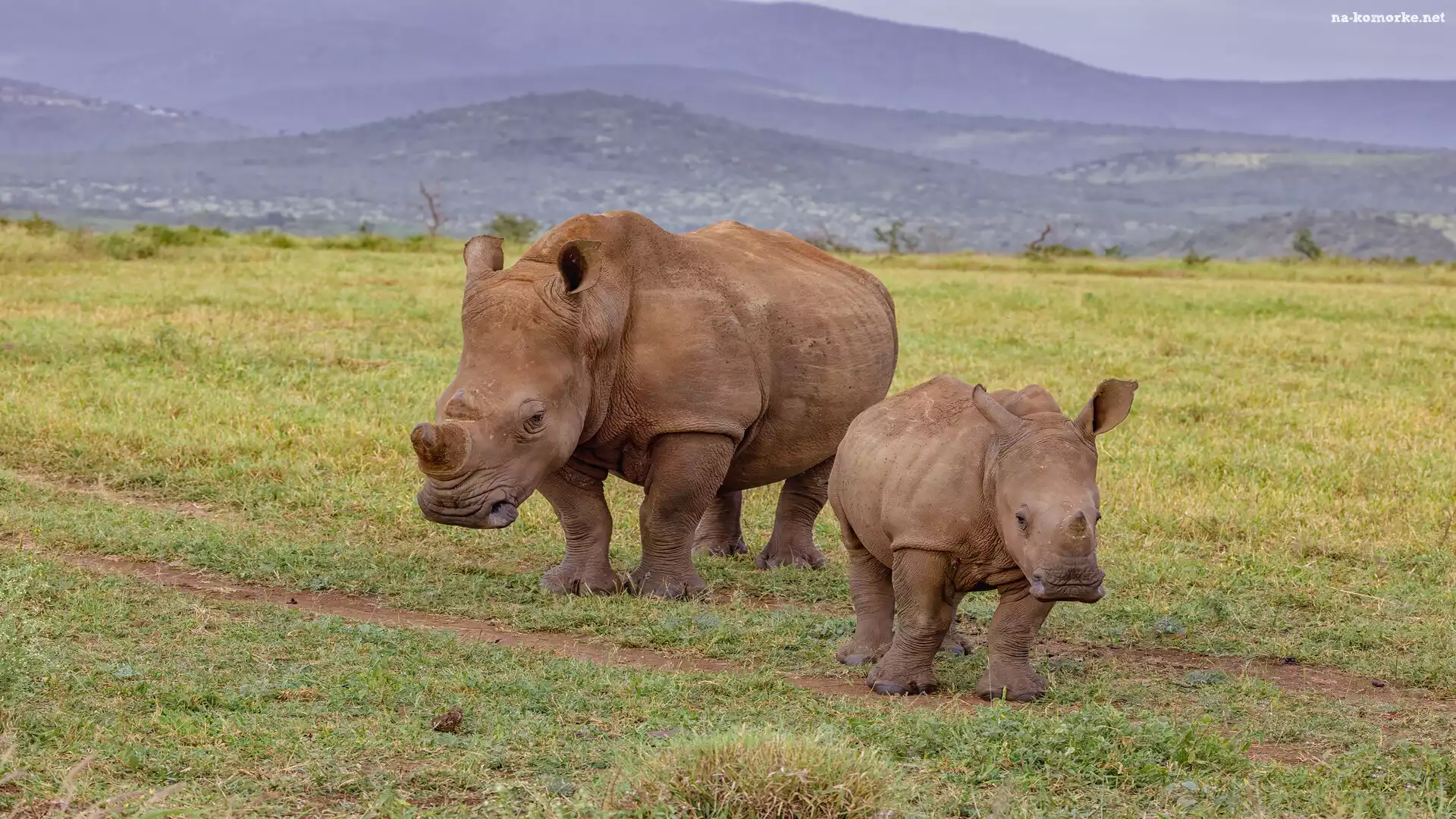 Dwa, Mały, Duży, Nosorożce, Trawa na Komórkę