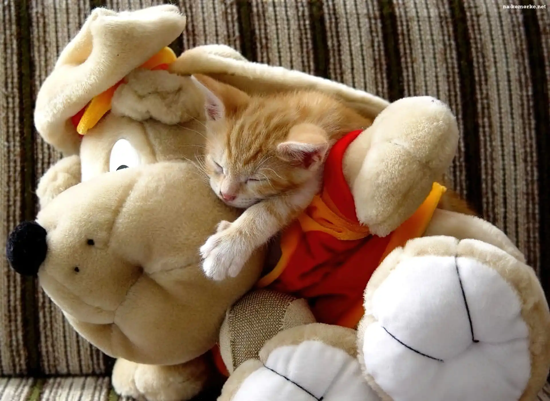 Mały, Pies, Kotek, Pluszowy na Komórkę