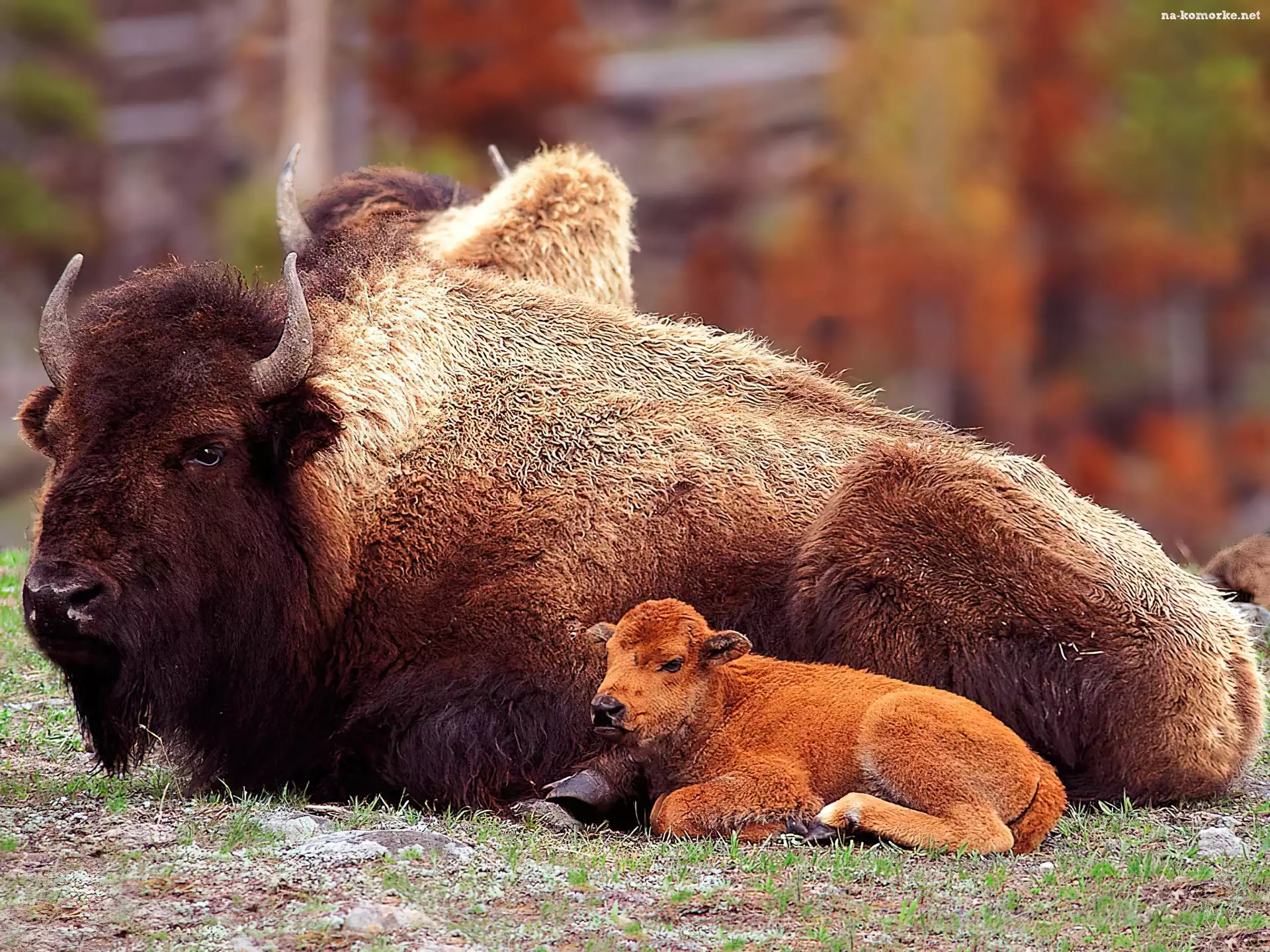 Zima, Śnieg, Żubr Żubrza, Rodzina, Śnieg Żubry, drzewa Żubr, trawa, kamienie Pomnik, Żubra Mama, Żubr Głowa, Żubra Zwierze, Polana, Żubr, Las