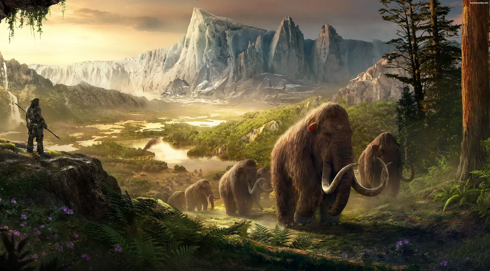 Fantasy, Mamuty, Człowiek, Epoka, Lodowcowa, Góry, Las na Komórkę