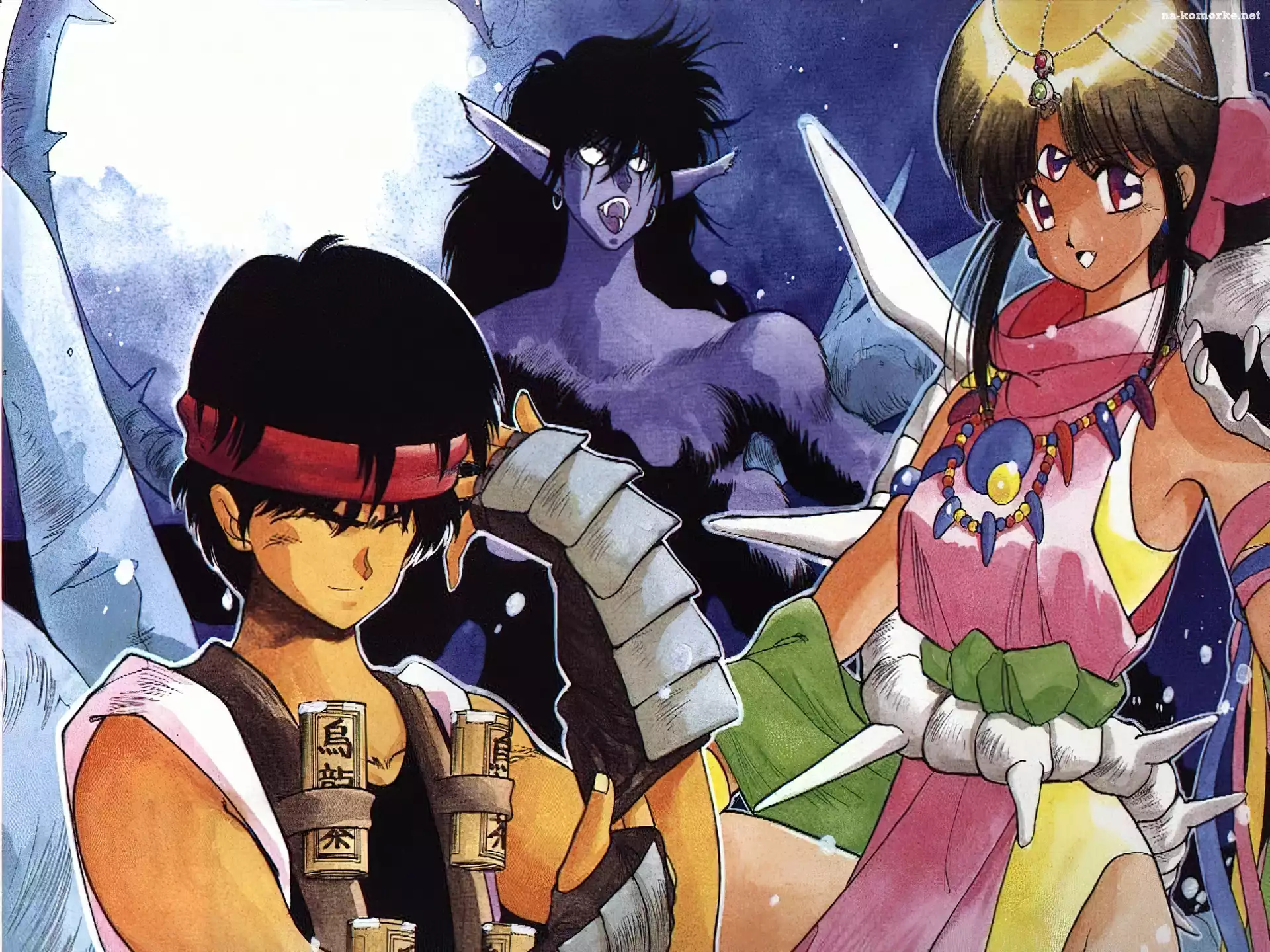 Manga 3x3 Eyes, ludzie, para Manga 3x3 Eyes, ludzie Manga 3x3 Eyes, skrzydła, ludzie, postać Manga 3x3 Eyes, dziewczyna