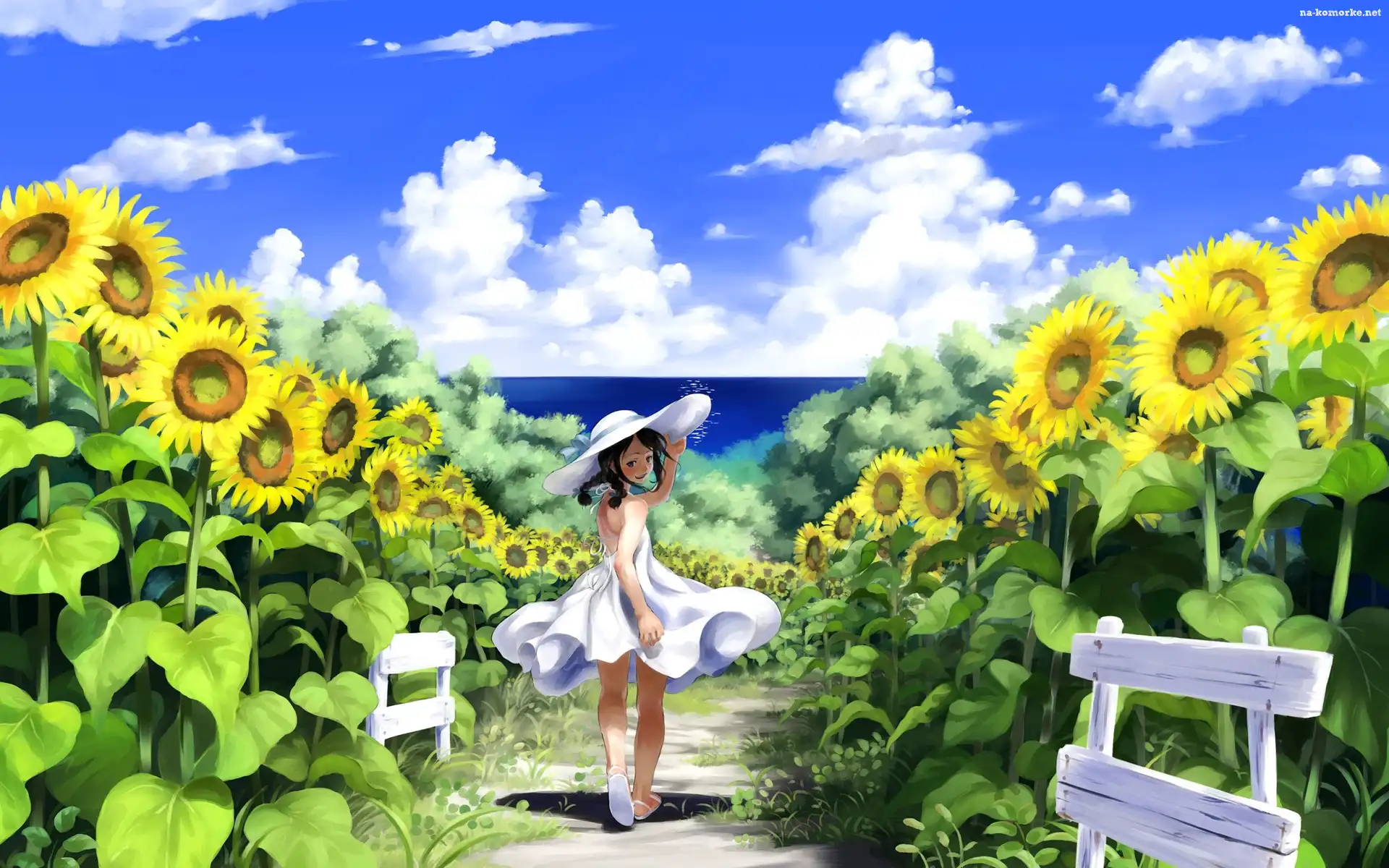 Manga Anime, Lato, Dziewczynka, Pole, Słoneczniki na Komórkę