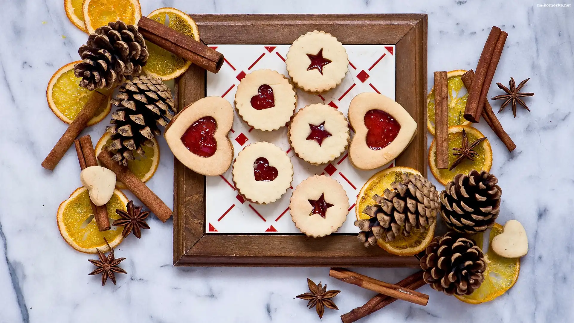 Ciasteczka, Marmurkowe, Tło, Ramka, Szyszki, Cynamon, Plastry na Komórkę