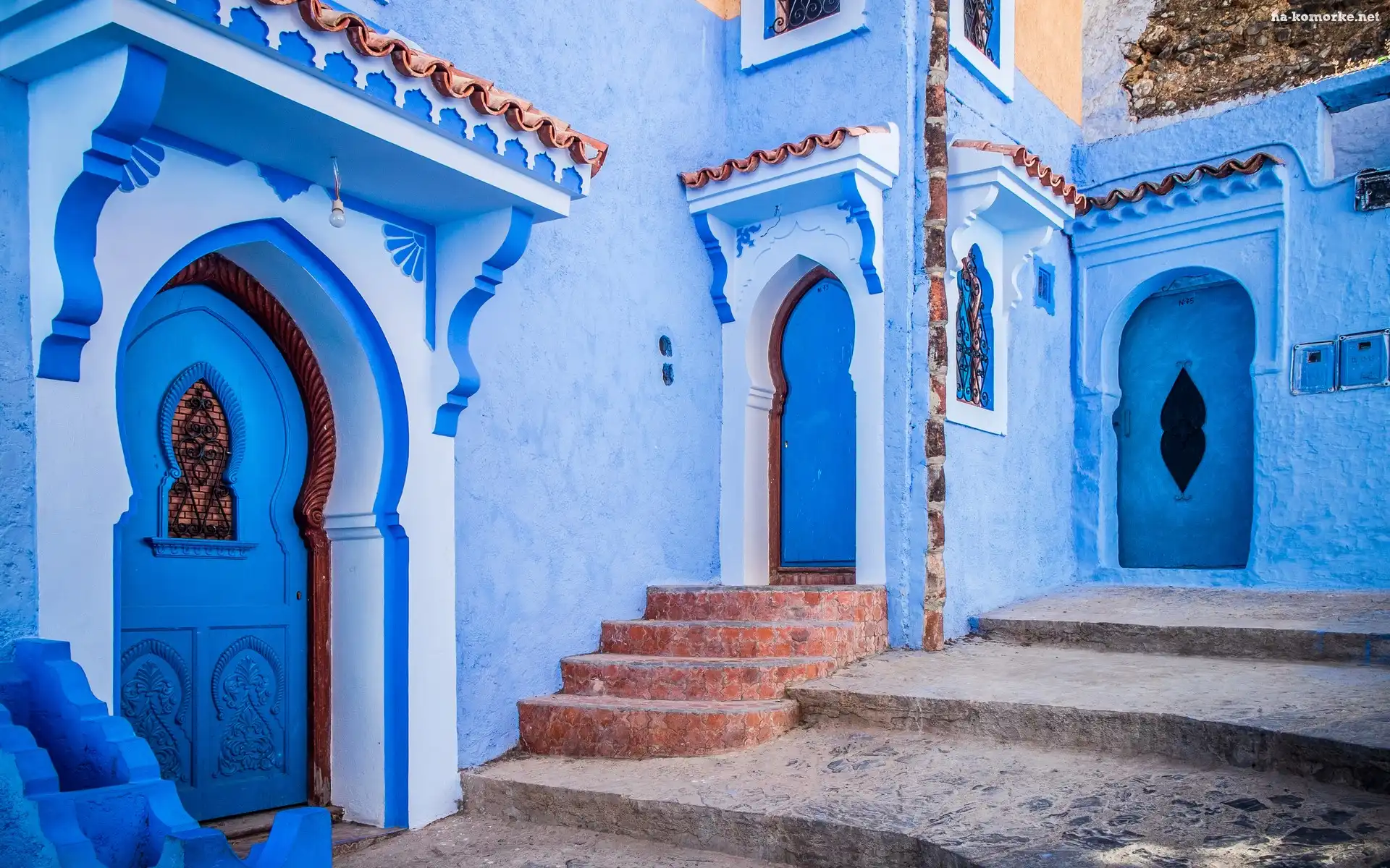 Domy, Maroko, Miasteczko Szafszawan, Błękitne miasto, Uliczka na Komórkę
