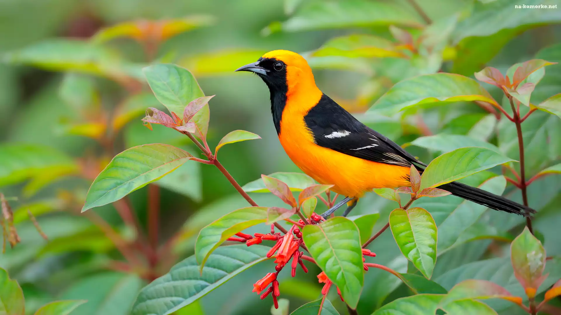 Żółto-czarny, Kacyk maskowy, Liściaste, Ptak, Gałązki na Komórkę