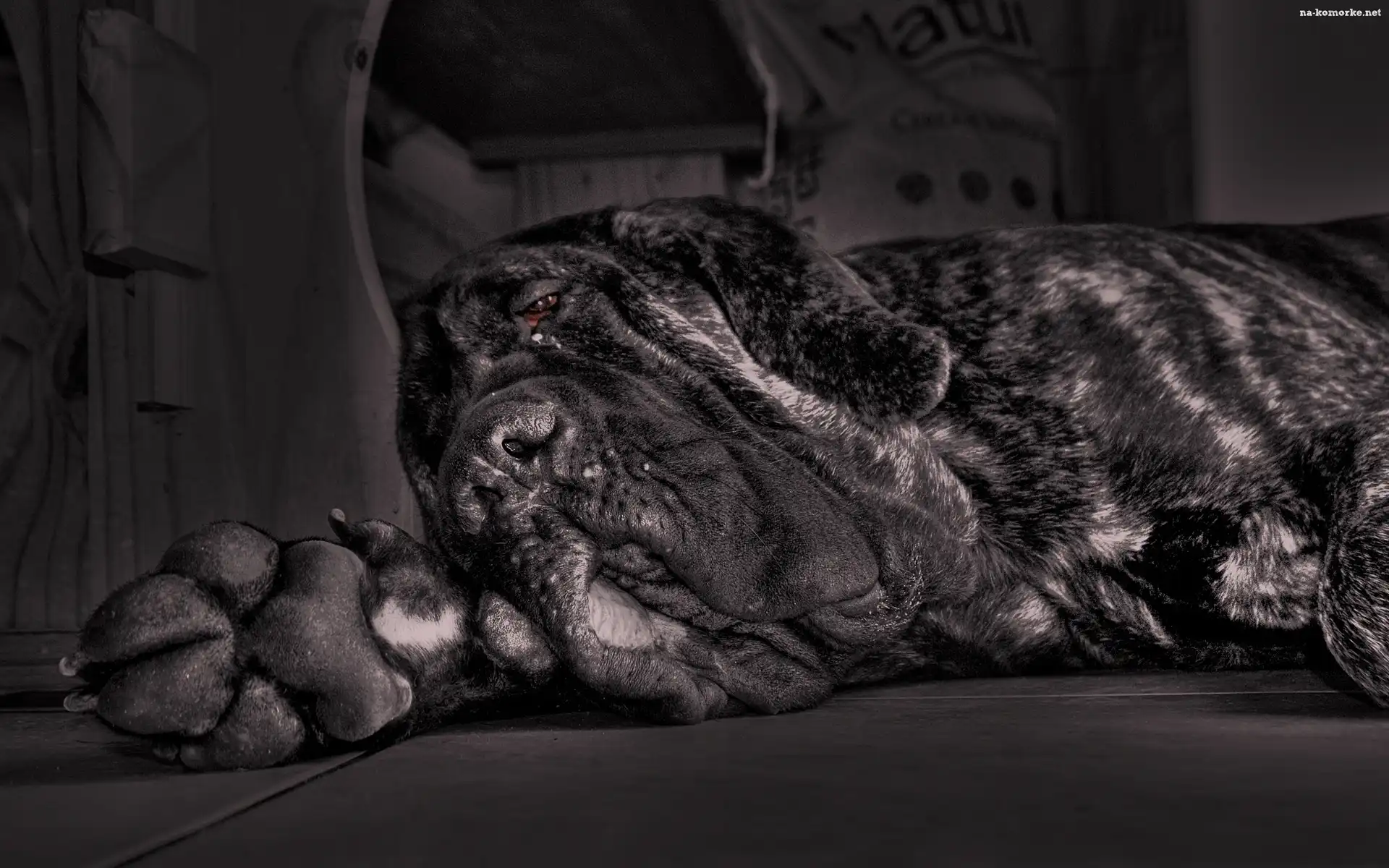 Morda, Mastifa neapolitańskiego Mastif neapolitański, czerwona, obroża Mastif neapolitański, szare, umaszczenie Mastif, Odpoczynek Pies, Mastif, Neapolitański