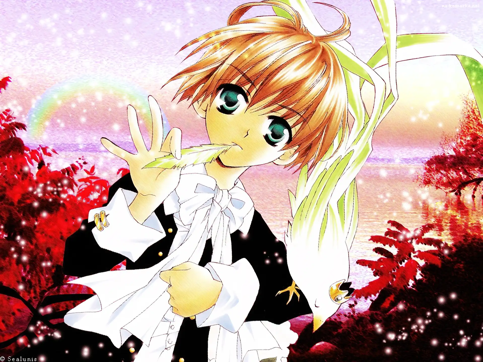 Matantei Loki Ragnarok, ptak, dziewczynka, piórko na Komórkę