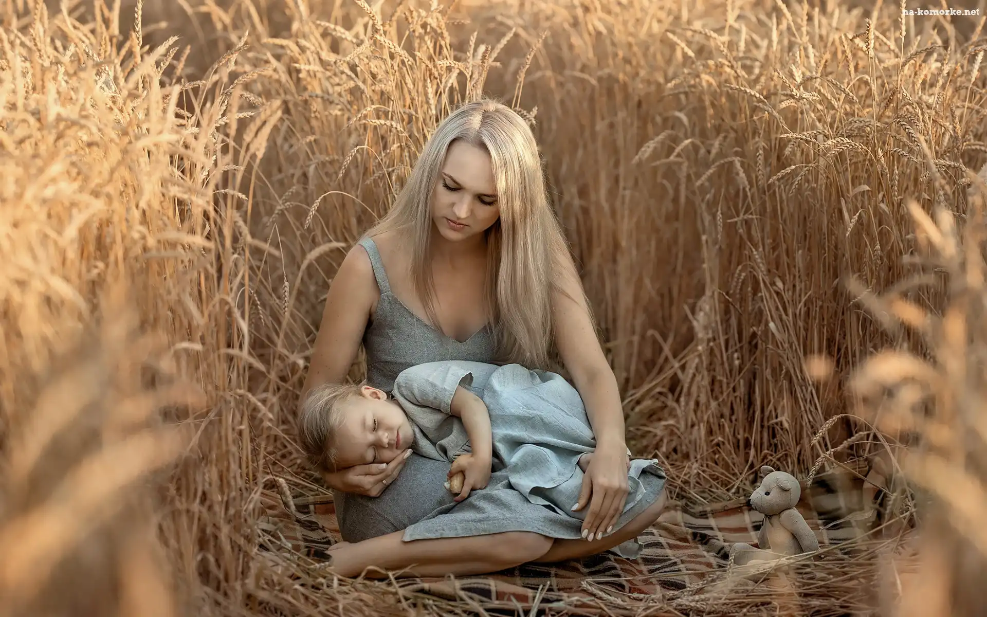 Pole, Matka, Córka, Zboże, Kobieta, Dziewczynka, Dziecko na Komórkę