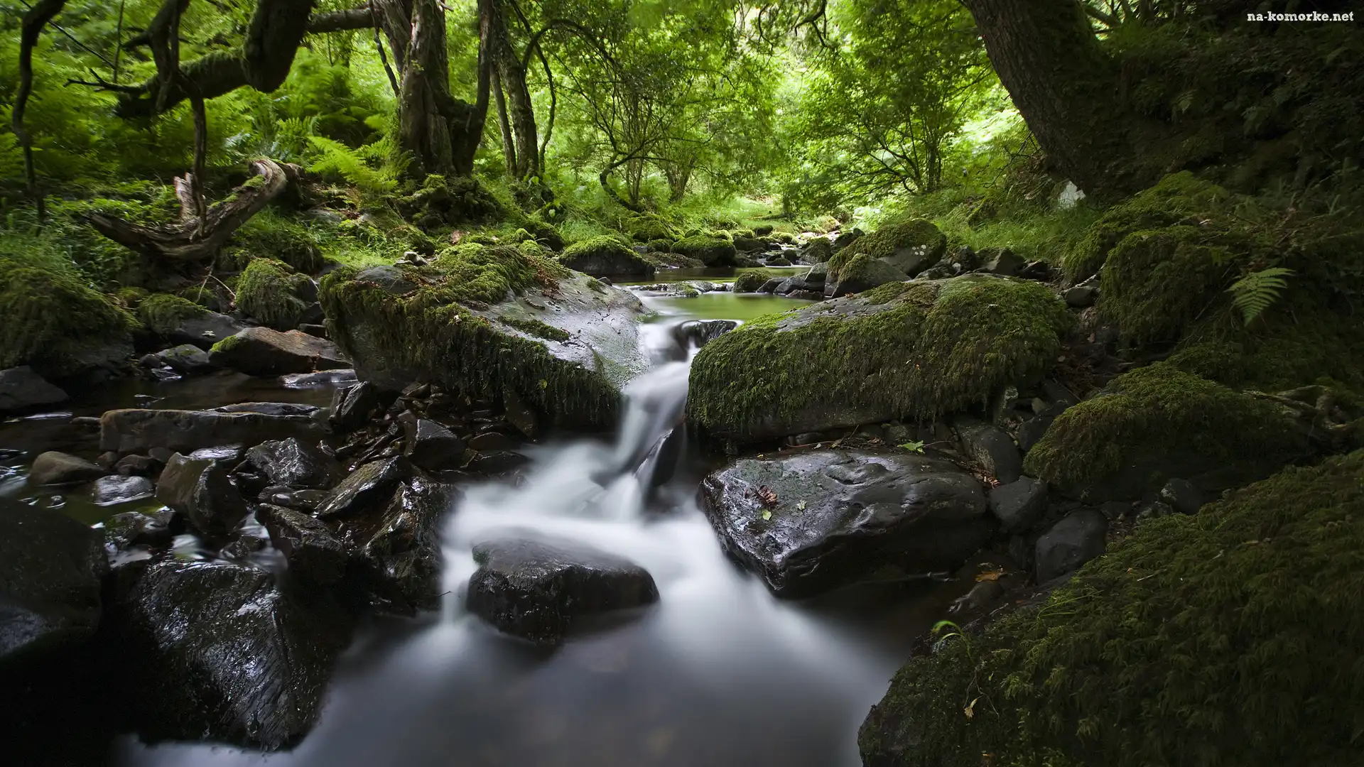 Mech, Las, rzeka, Drzewa, Kamienie na Komórkę