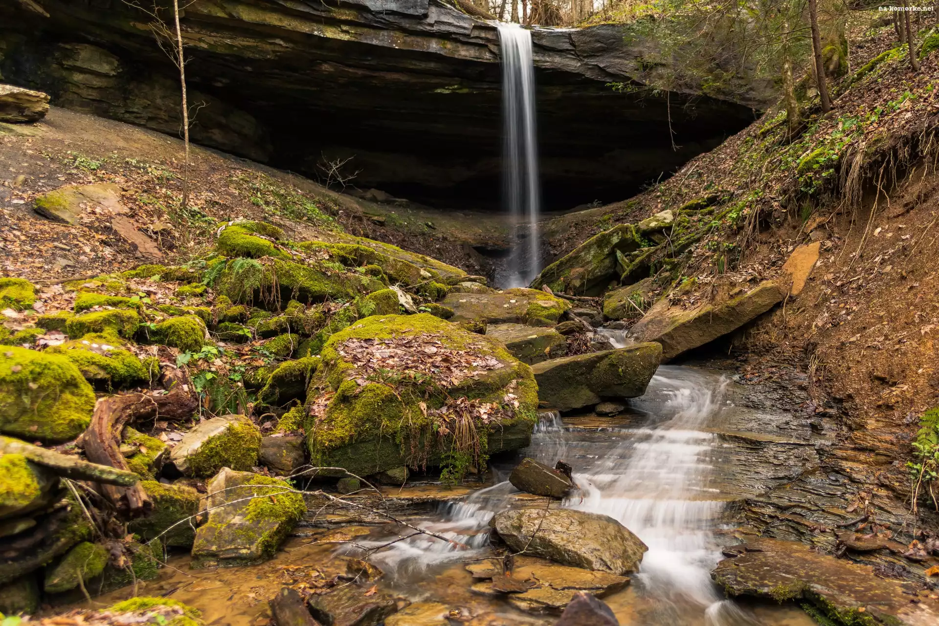 Mech, Skały, Omszałe, Kamienie, Wodospad na Komórkę