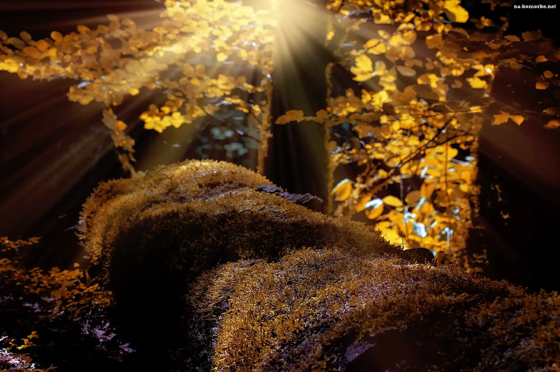 Światło, Las, Jesień, Mech, Przebijające na Komórkę