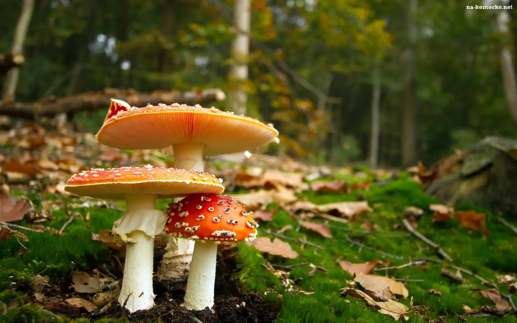 Mech, Las, Drzewa, Liście, Grzyby na Komórkę