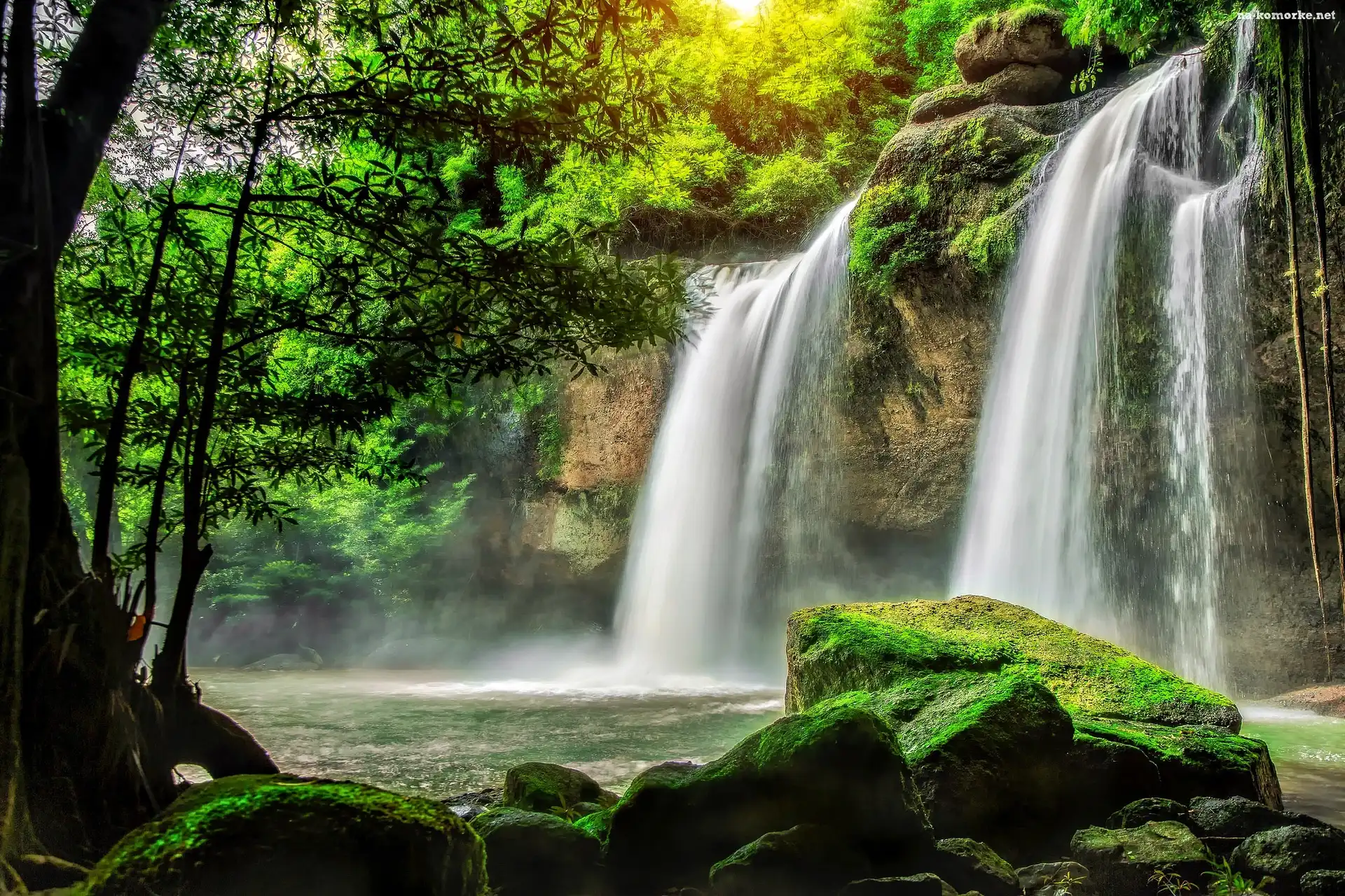 Mech, Las, Wodospad, Strumień, Kamienie na Komórkę