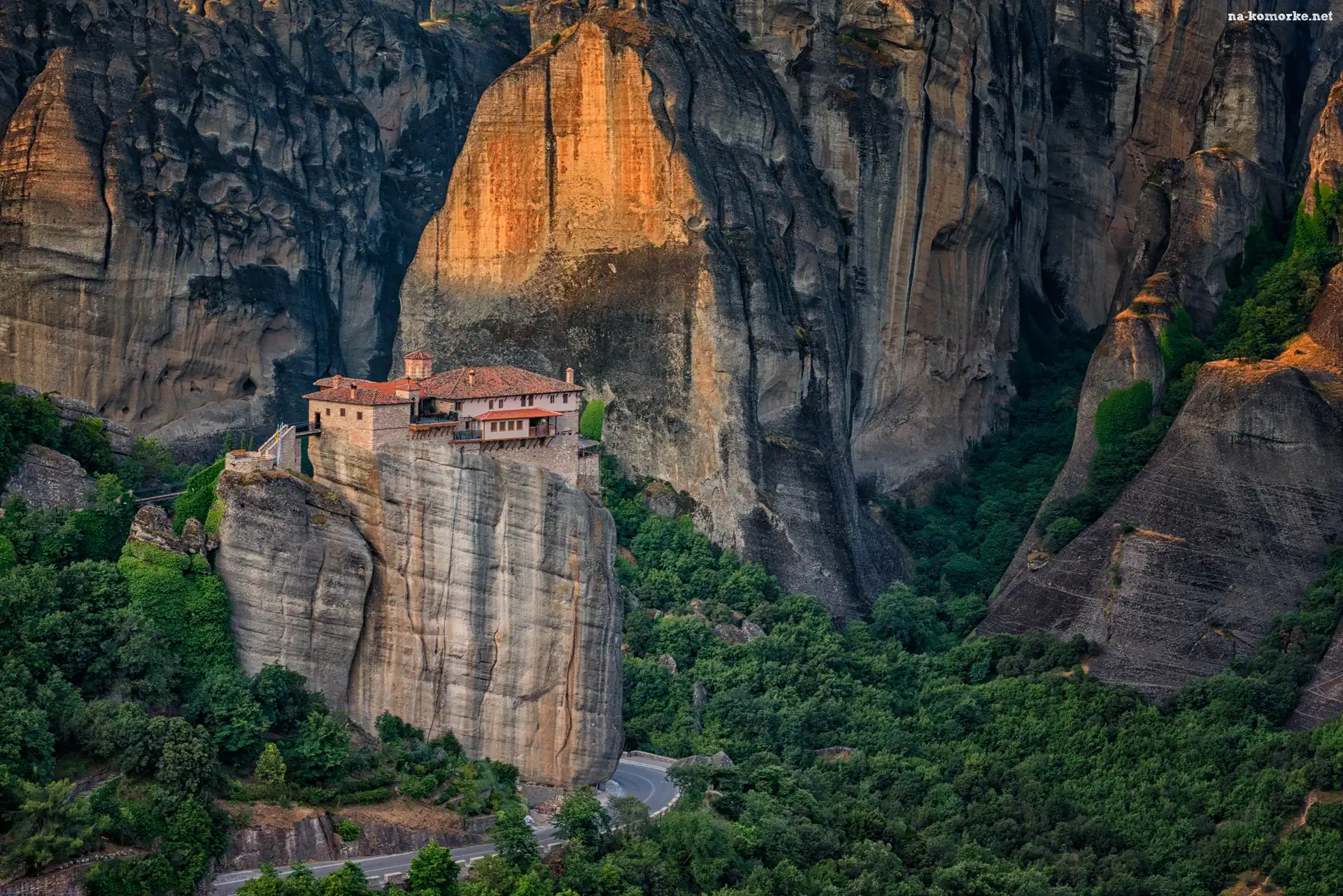 Wąwóz, Skały, Meteory, Klasztor Świętej Trójcy, Grecja, Piaskowiec, Tesalia, Góry, Kalambaka na Komórkę |