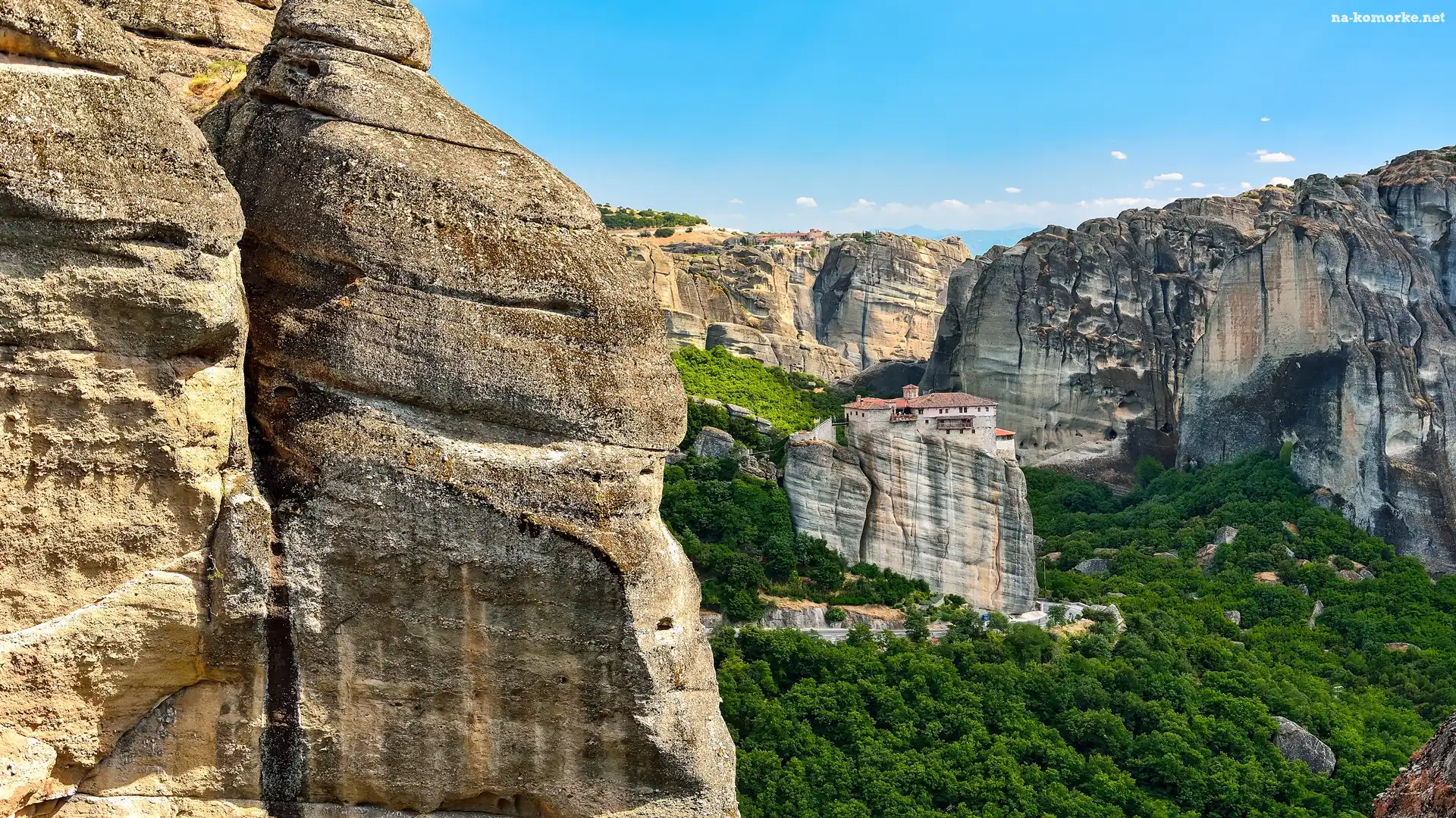 Wąwóz, Skały, Meteory, Klasztor Świętej Trójcy, Grecja, Piaskowiec, Tesalia, Góry, Kalambaka na Komórkę |