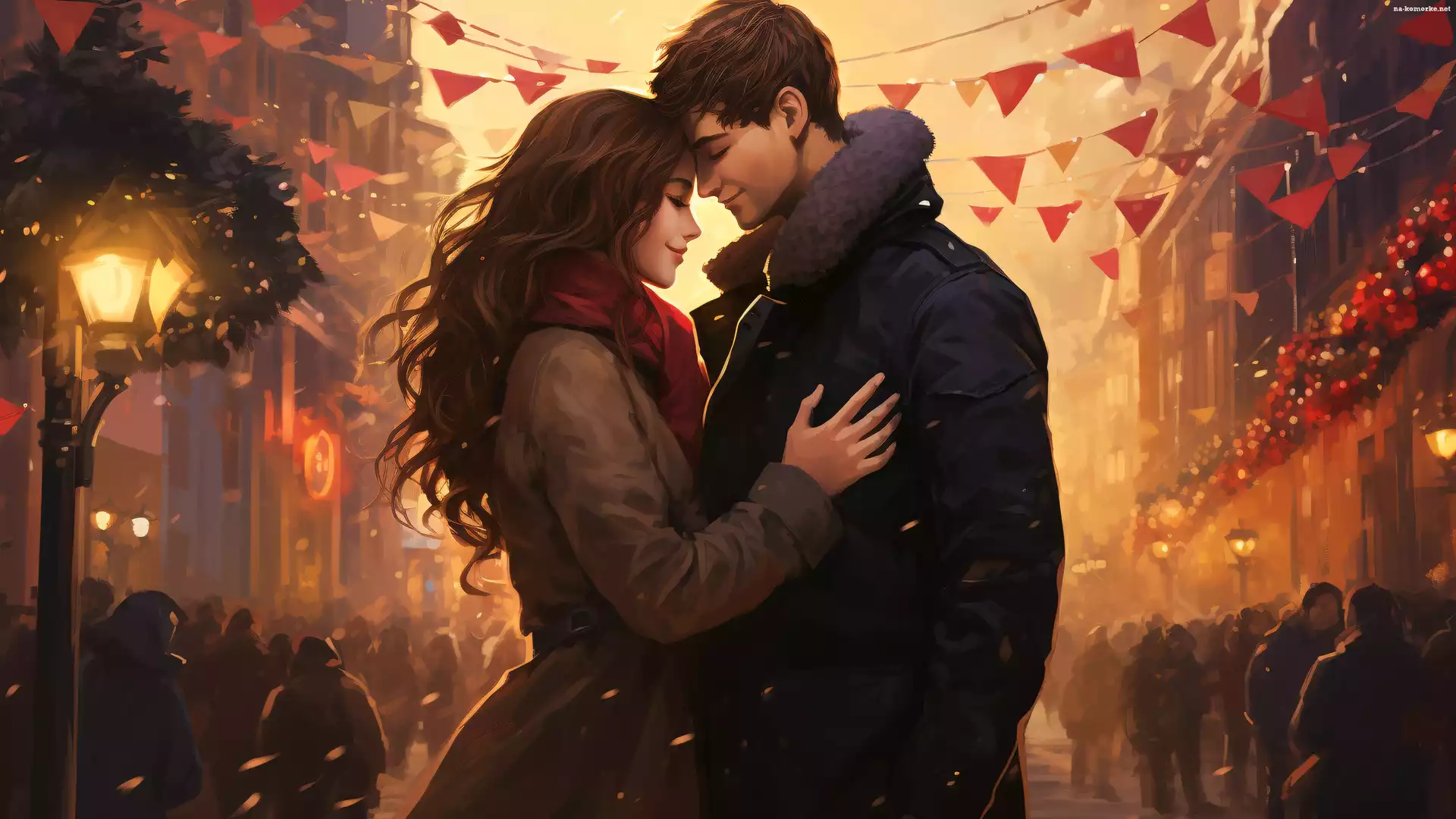 Mężczyzna, Tłum, Miasto, Para, Ulica, Światła 2D, Zakochani, Kobieta na Komórkę