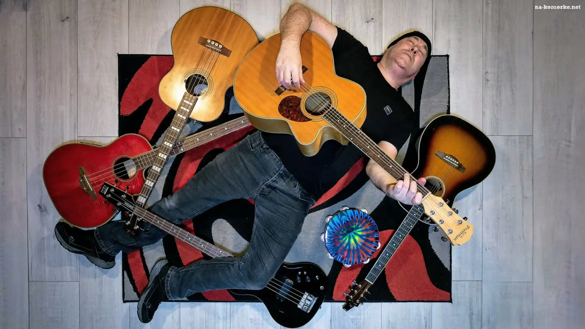 Mężczyzna, Gitary, Muzyka, Dywan, Leżący na Komórkę
