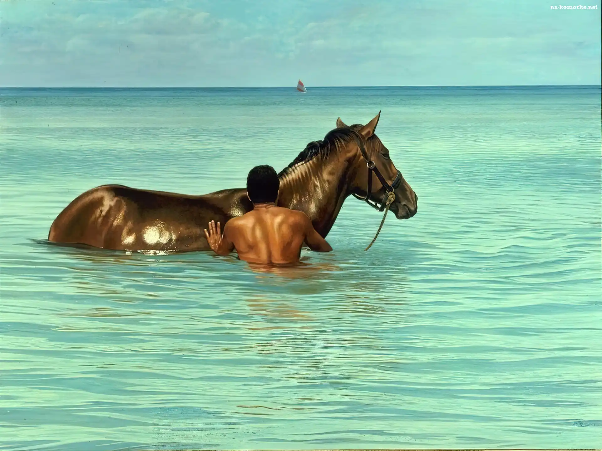 Koń, Mężczyzna, Morze na Komórkę
