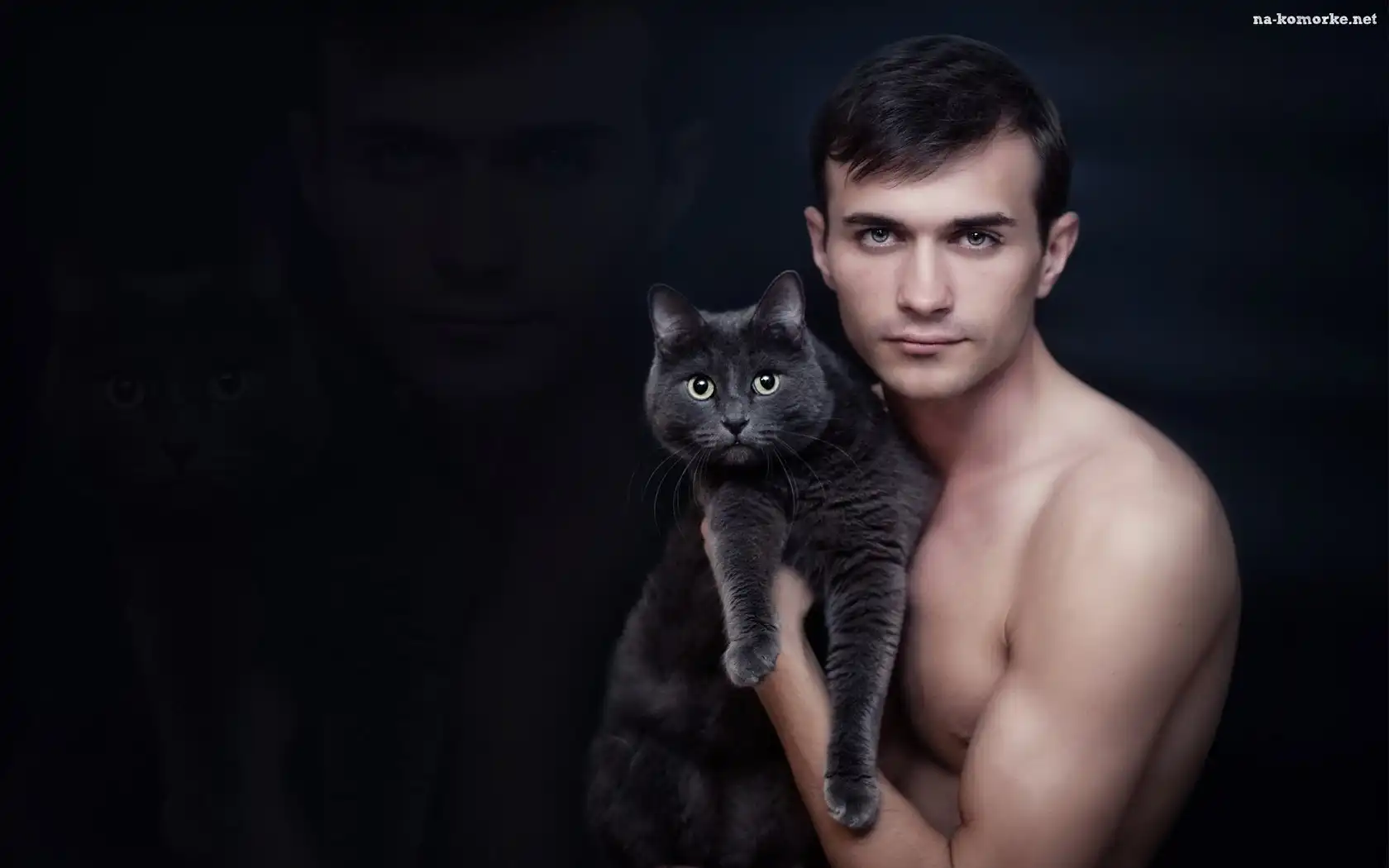 Mężczyzna, Kot, Nagi, Tors na Komórkę