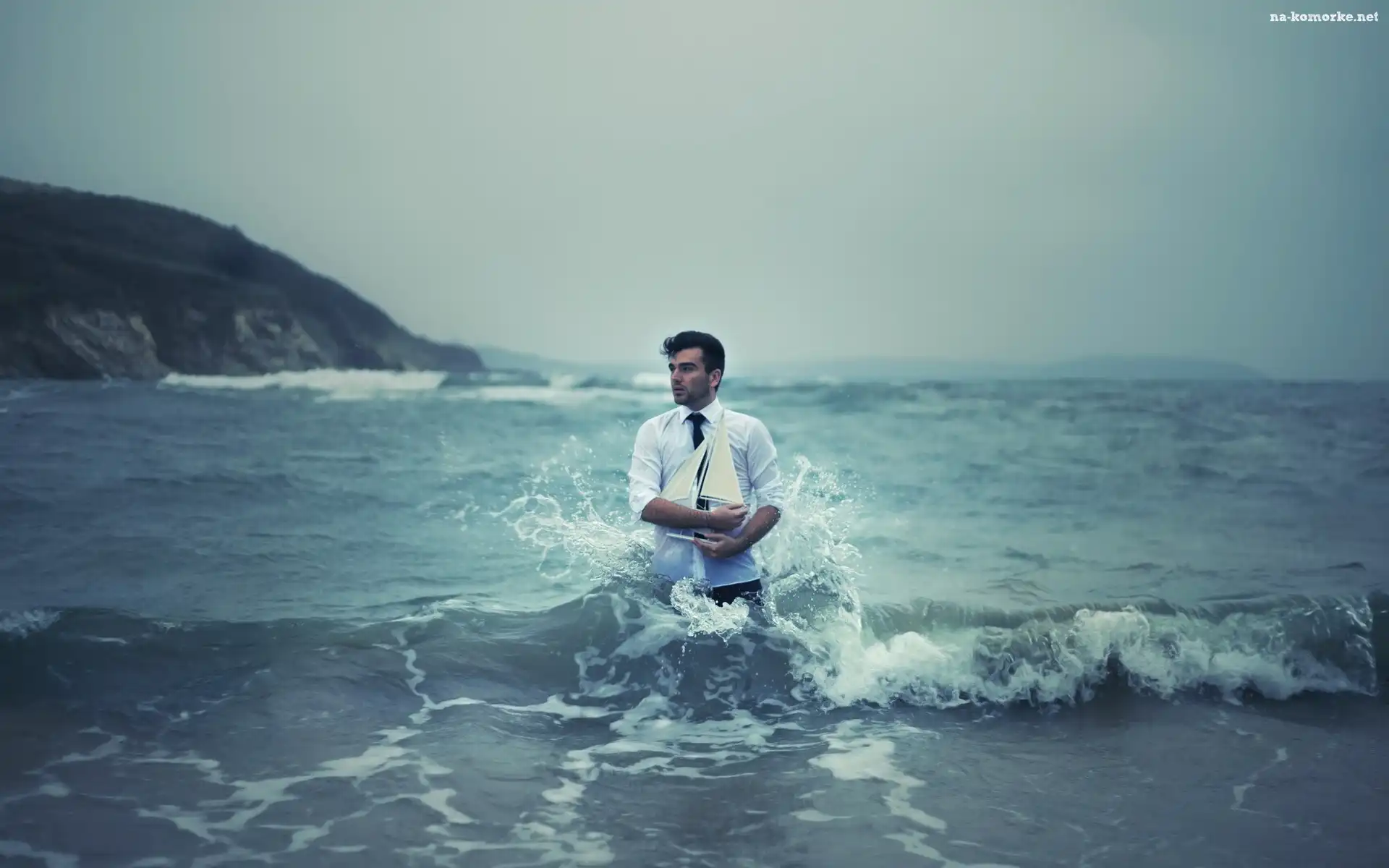 Mężczyzna, Skała, Łódeczka, Morze na Komórkę