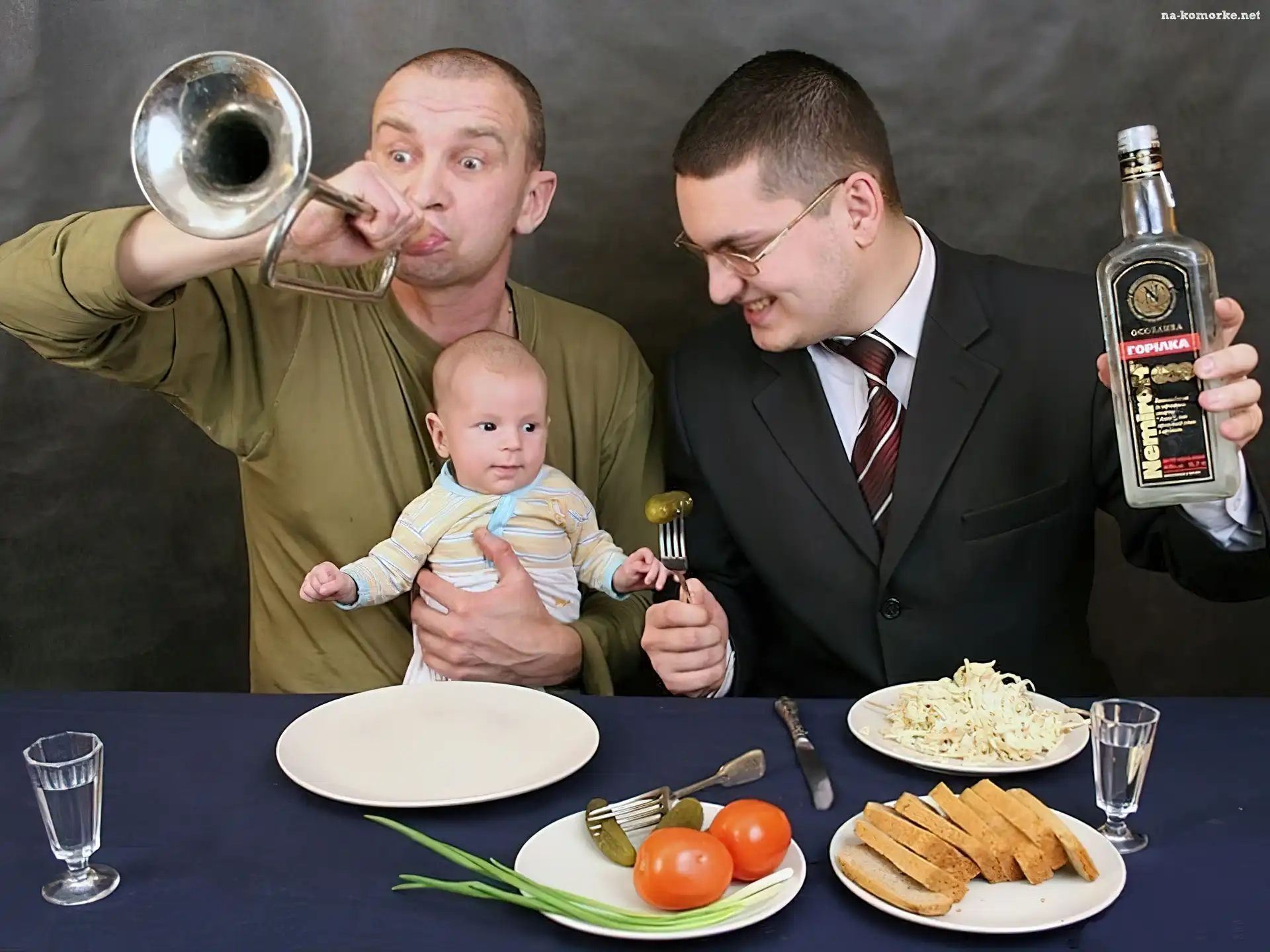 Mężczyźni, Zakąska, Dziecko, Alkohol na Komórkę