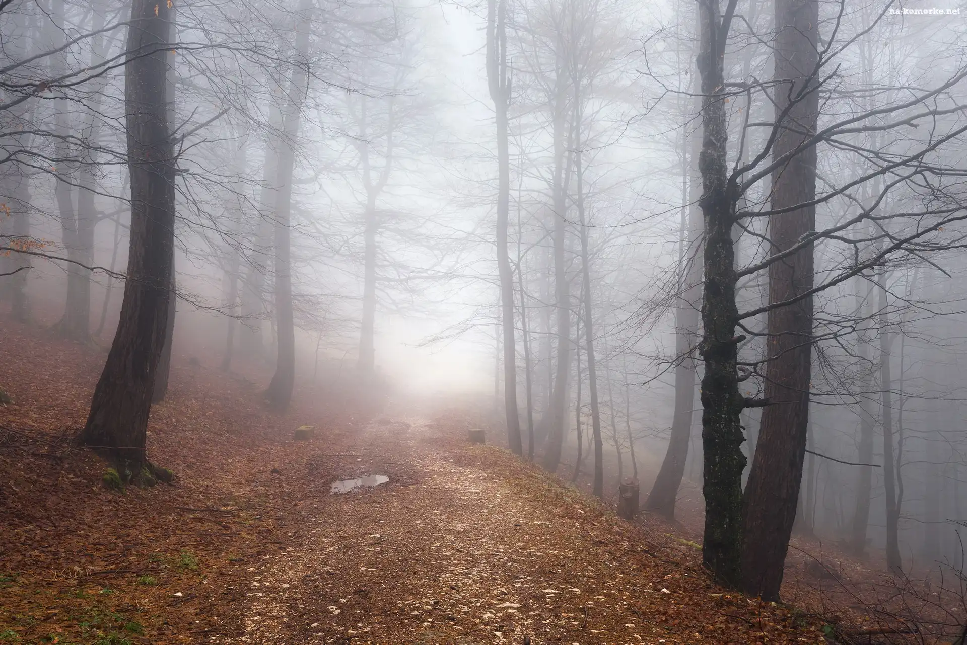 Mgła, Jesień, Las, Bezlistne, Drzewa na Komórkę