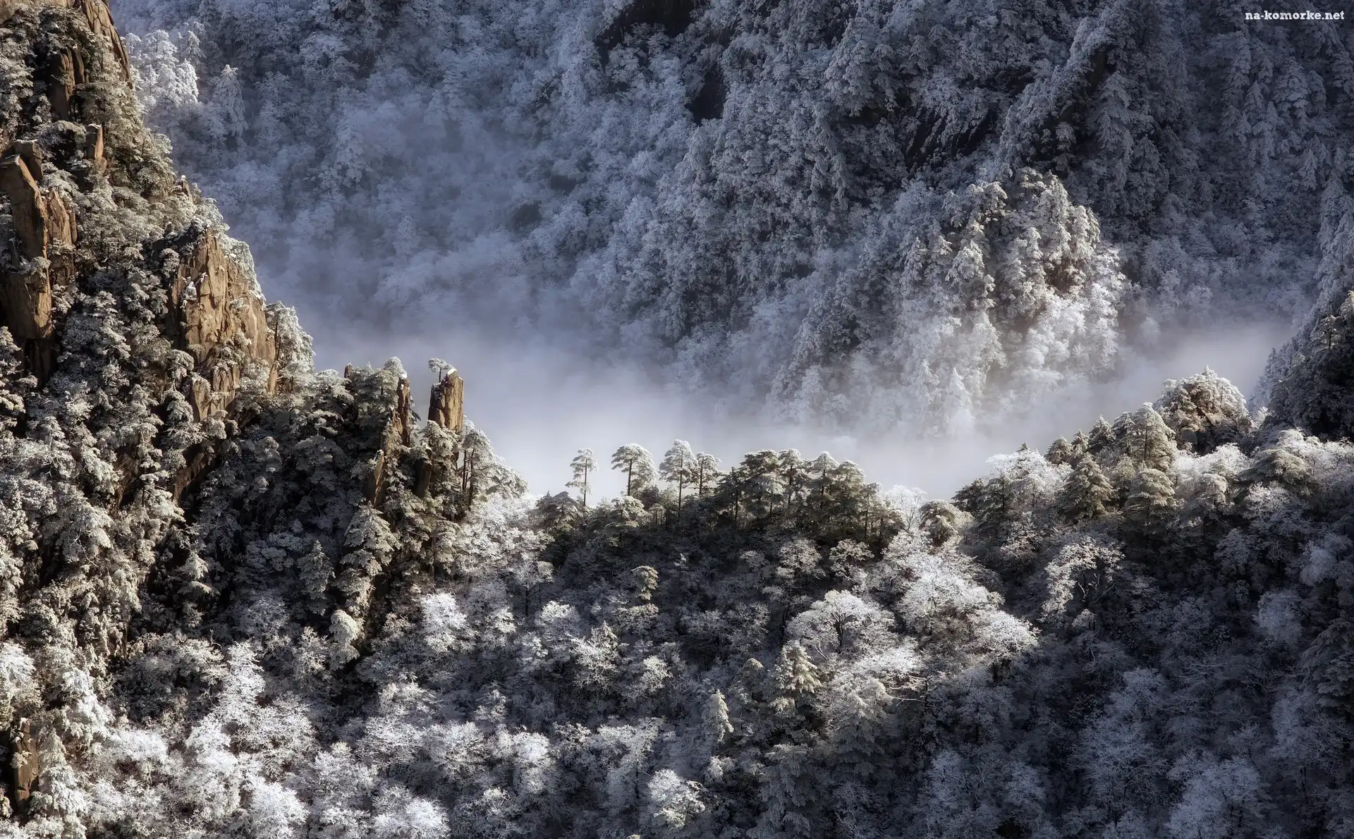 Mgła, Zima, Góry, Drzewa, Las na Komórkę