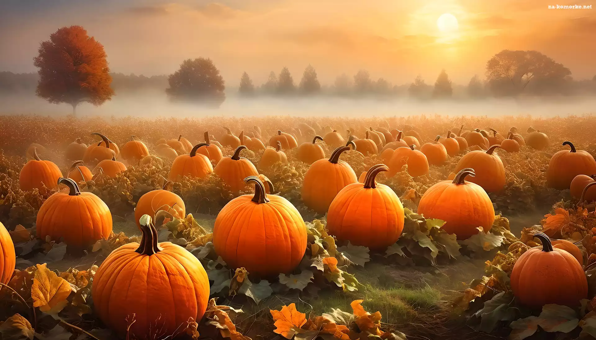 Dynie, Mgła, Drzewa, Pole, Grafika na Komórkę
