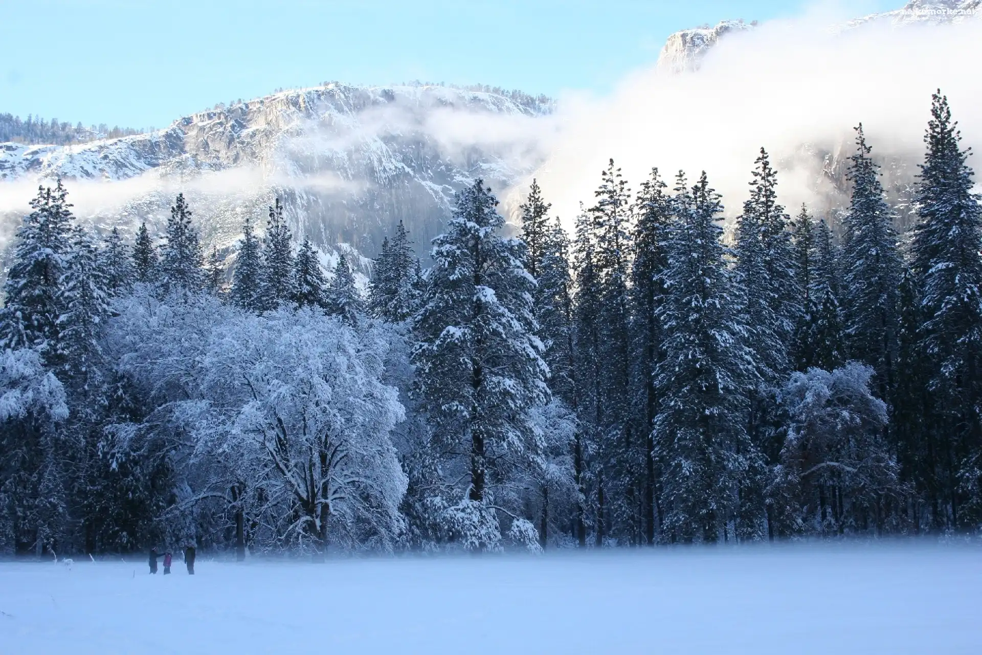 Mgła, Śnieg, Mróz, Drzewa, Góry na Komórkę