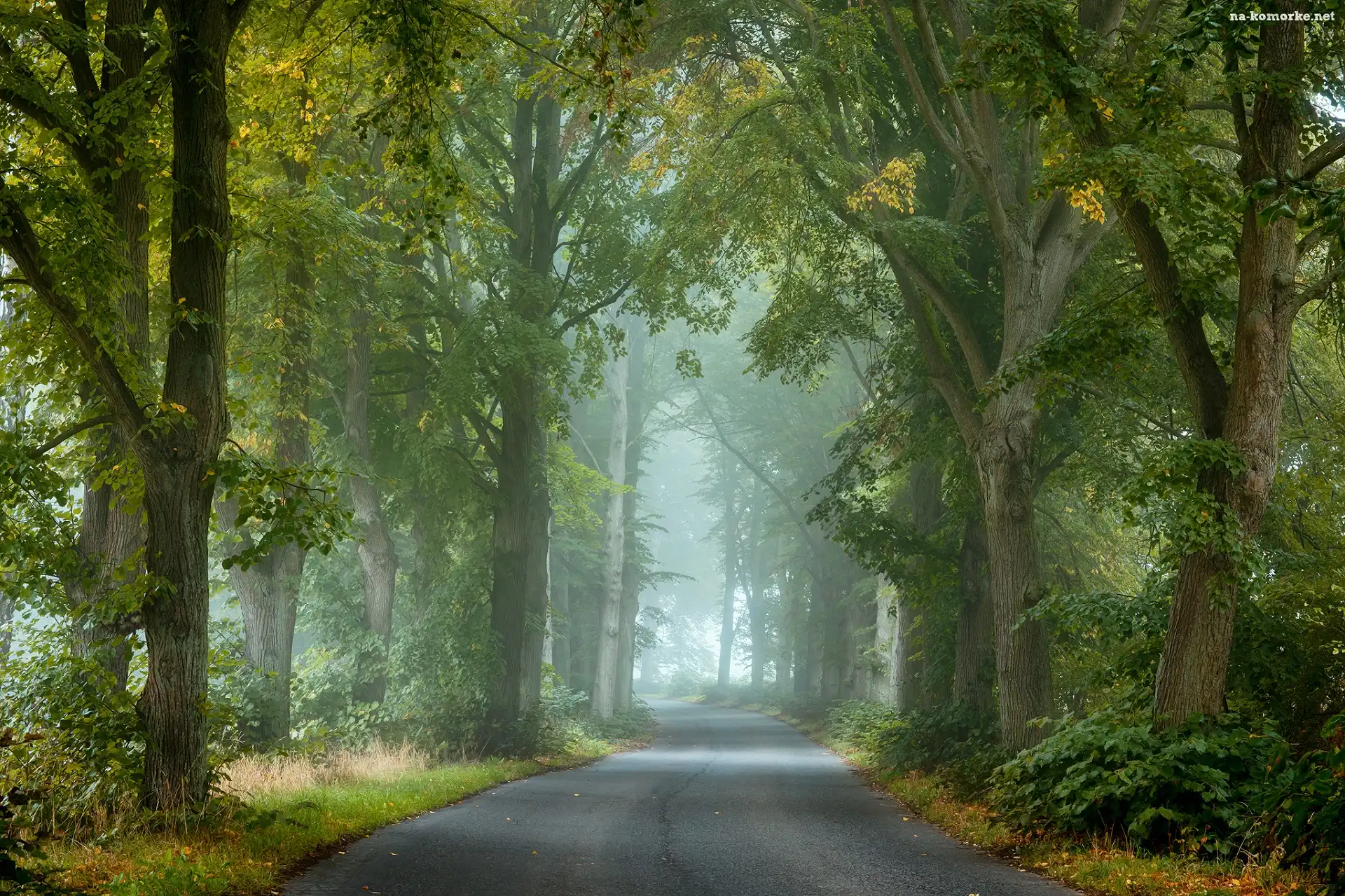 Mgła, Droga, Zielone, Drzewa, Las na Komórkę