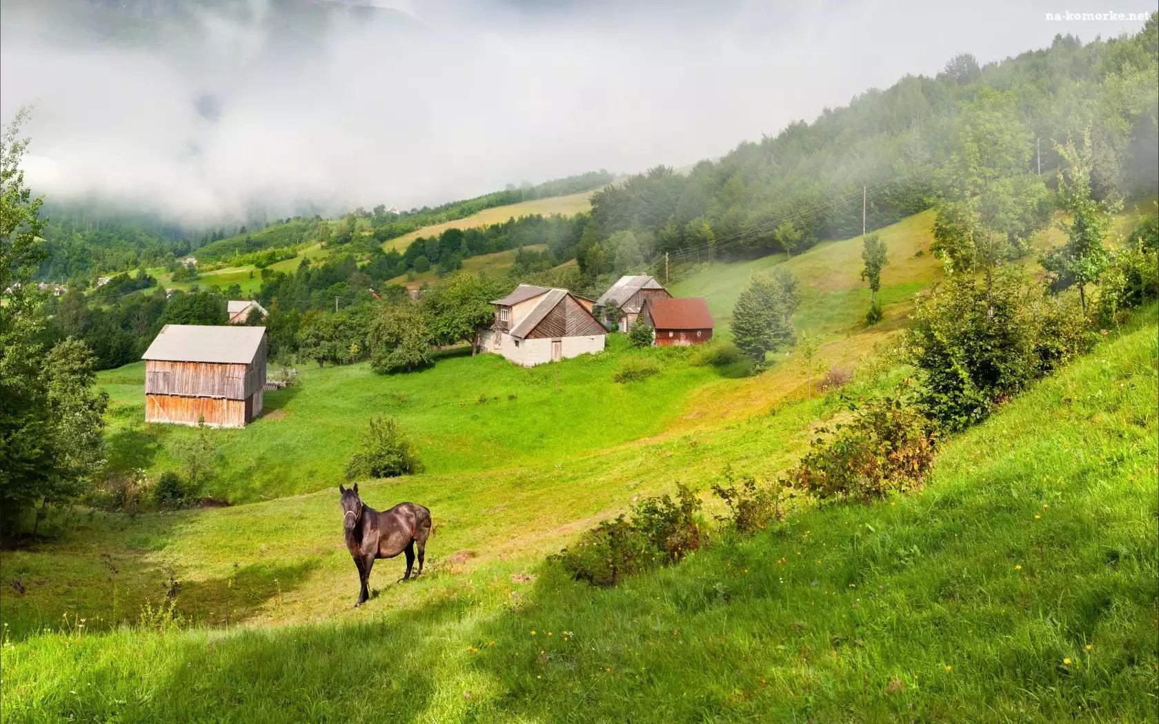 Mgła, Koń, Łąka, Góry, Lasy na Komórkę