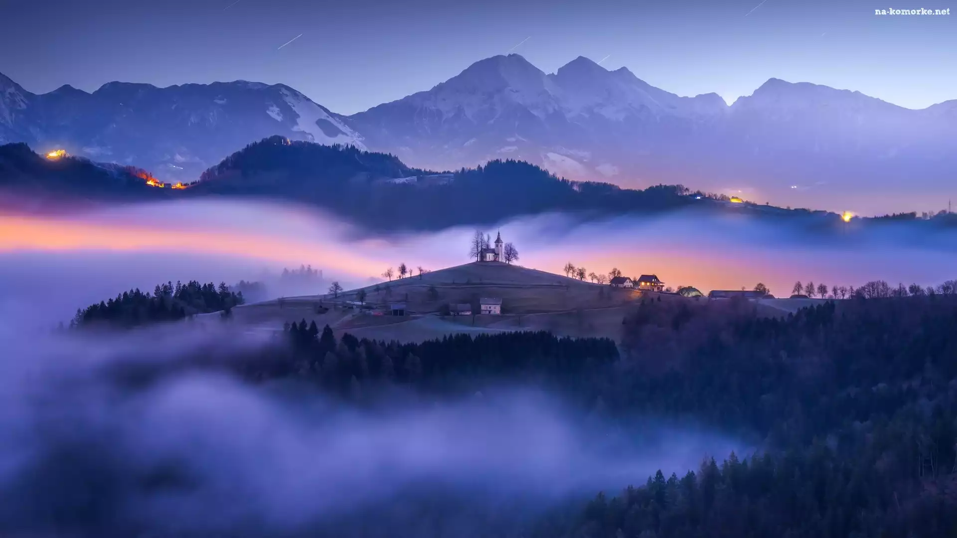 Góry, Słowenia, Kościół, Mgła, Wzgórze, Jamnik na Komórkę