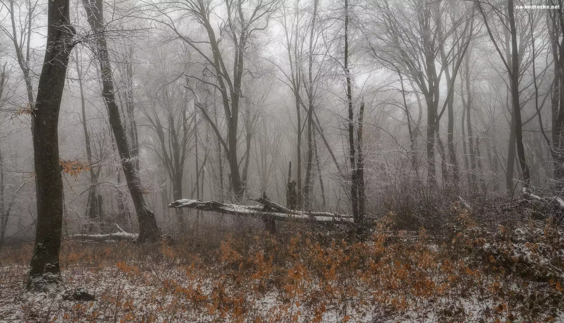 Mgła, Drzewa, Zima, Liście, Las, Opadłe na Komórkę