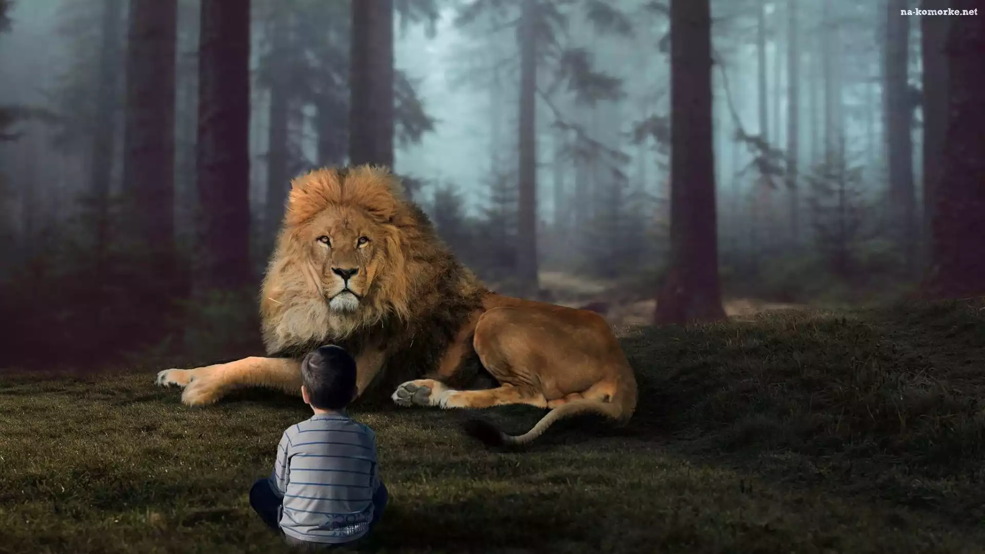 Mgła, Dziecko, Chłopiec, Lew, Las na Komórkę