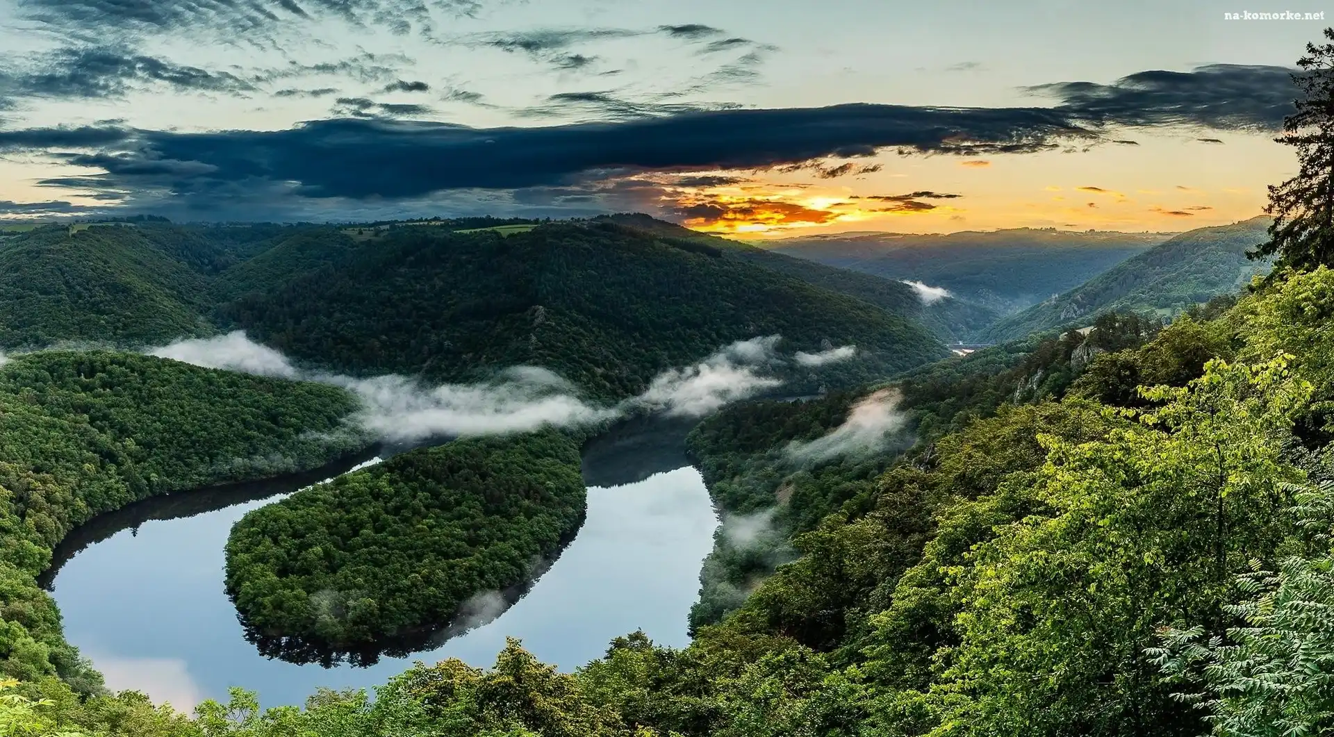 Mgła, Francja, Rzeka Sioule, Meander, Lasy na Komórkę