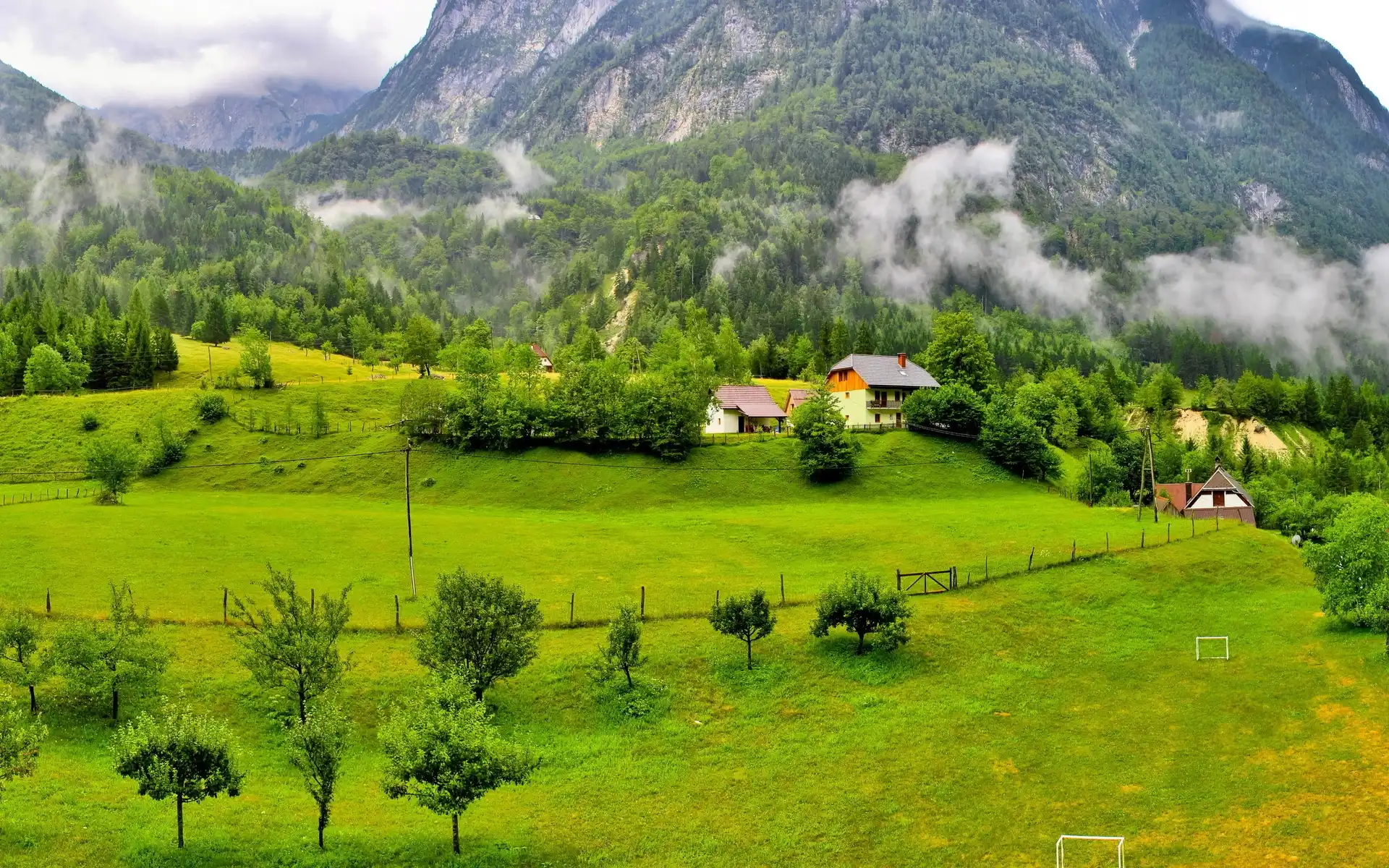 Mgła, Góry, Lasy, Pola, Domy na Komórkę