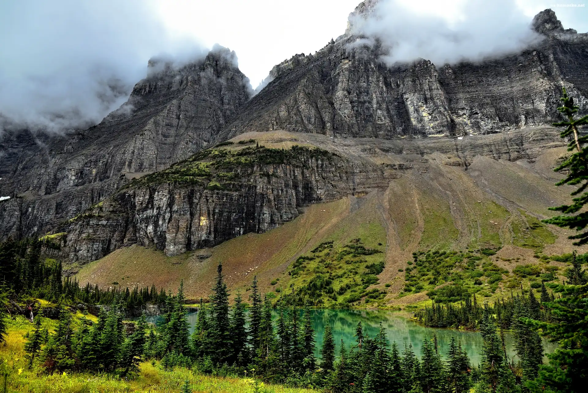Skały, Mgła, Świerki na Komórkę