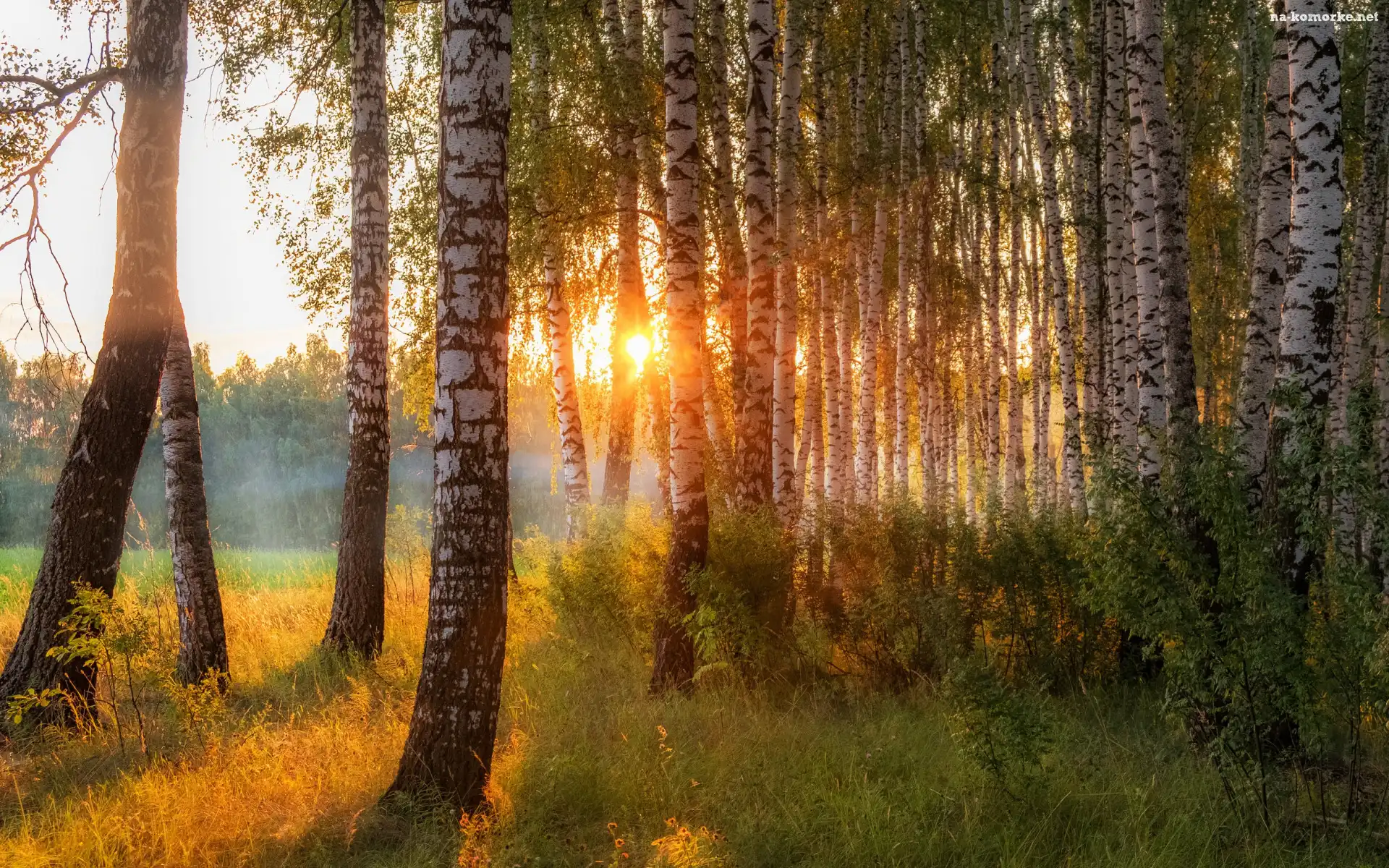 Mgła, Las, Brzozy, Słoneczny, Blask na Komórkę