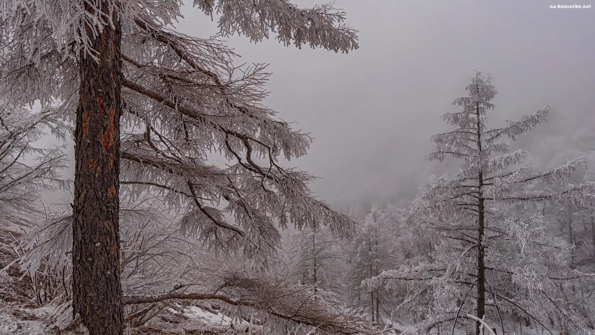 Drzewa, Zima, Las, Mgła, Szron, Śnieg na Komórkę
