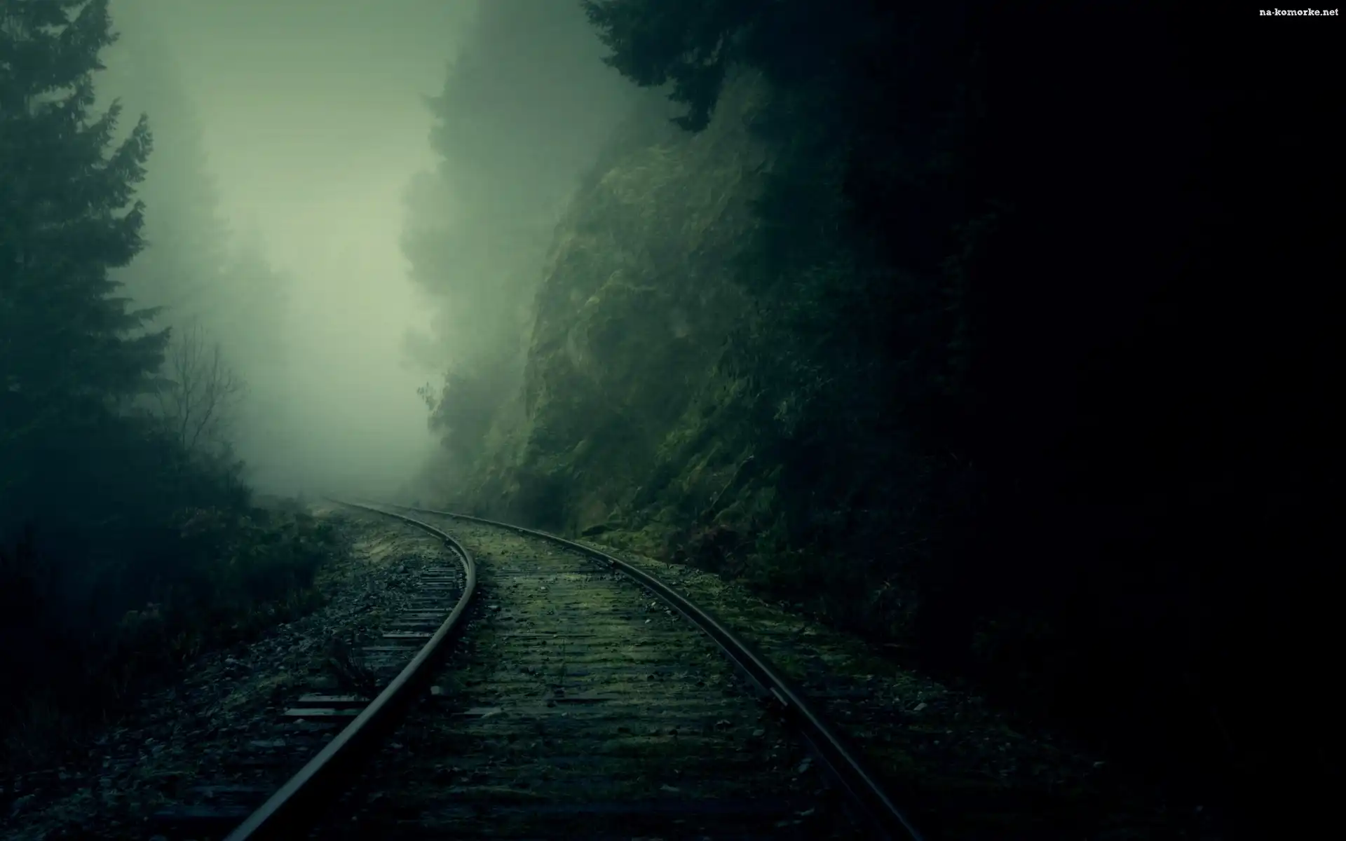 Mgła, Mrok, Drzewa, Tory, Kolejowe na Komórkę