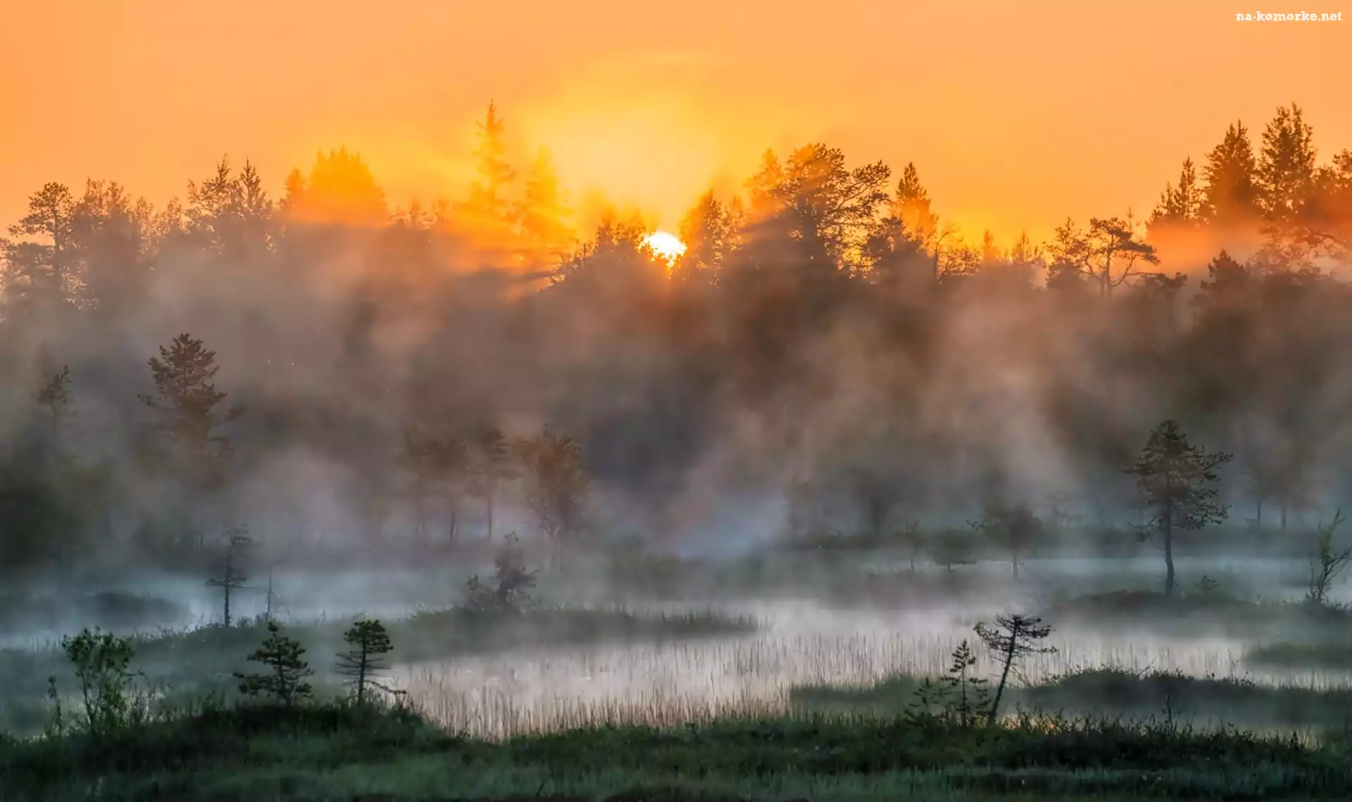 Mgła, Drzewa, Wschód słońca na Komórkę
