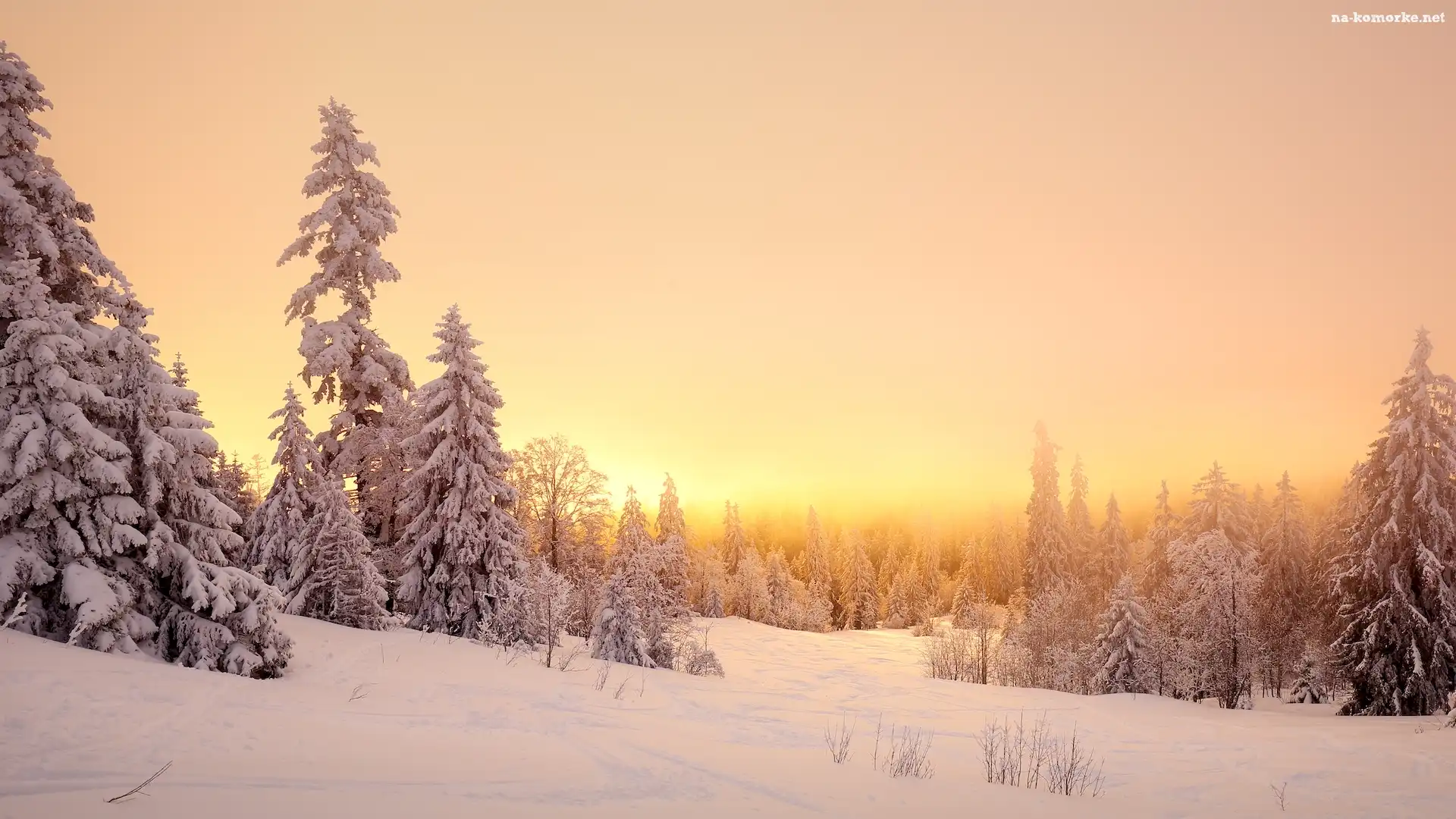 Mgła, Zima, Śnieg, Drzewa, Wschód słońca na Komórkę