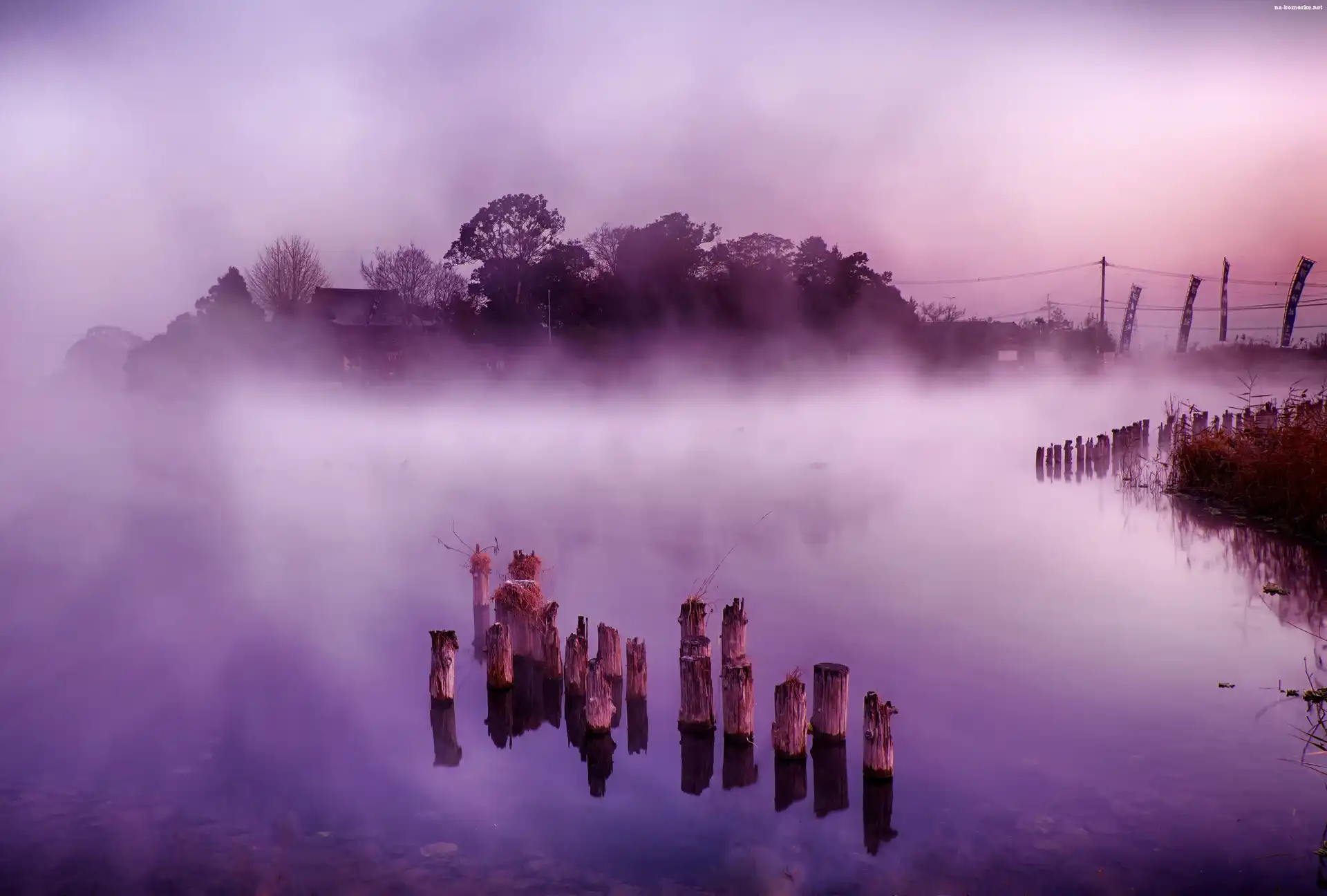 Mgła, Pływająca, Japonia, Świt, Wyspa, Jezioro na Komórkę