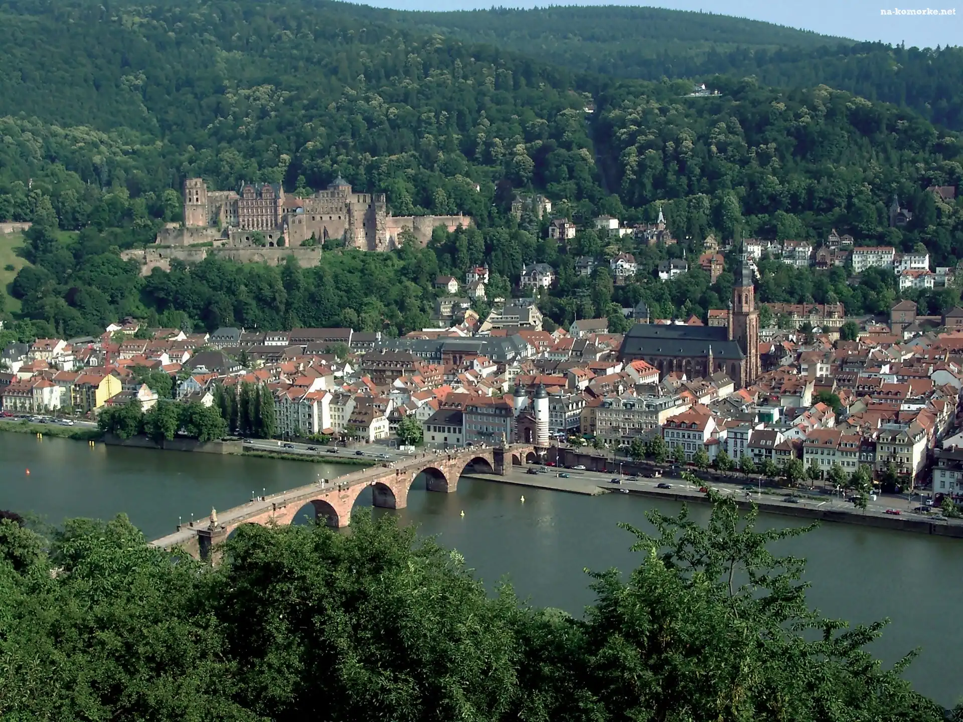 Rzeka, Heidelberg, Most, Badenia-Wirtembergia, Neckar, Zamek, Panorama, Miasta na Komórkę
