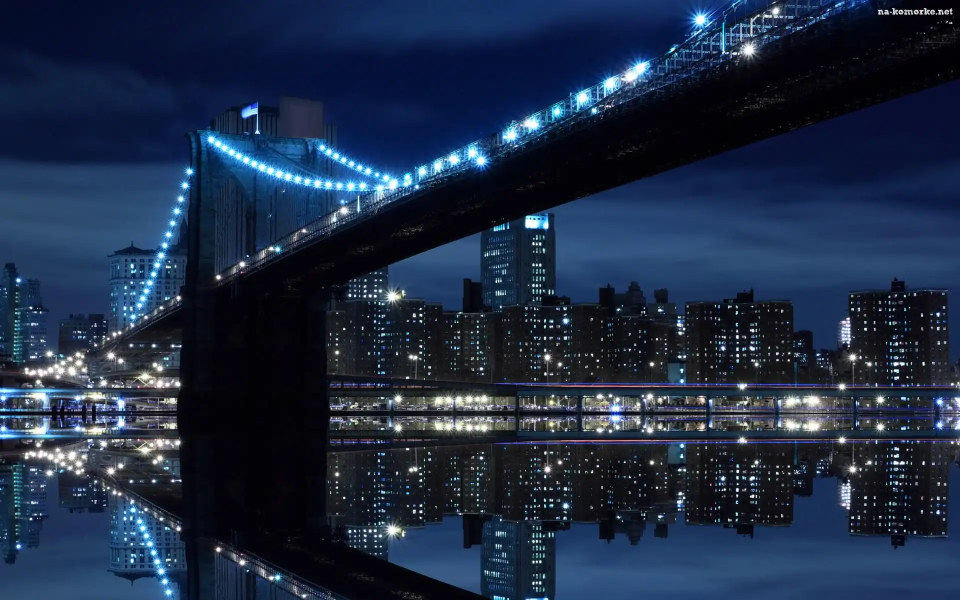 Światła, Most, Panorama, Miasta, Noc na Komórkę
