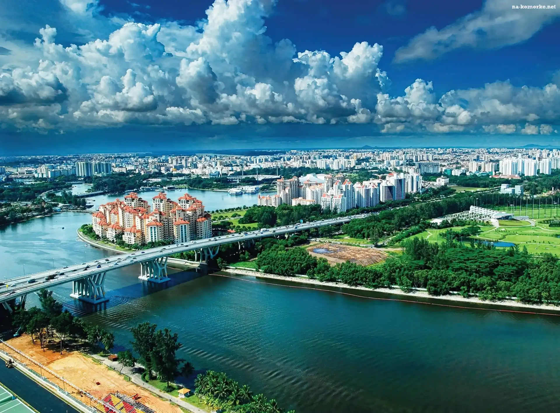 Miasta, Singapur, Rzeka, Most, Panorama na Komórkę