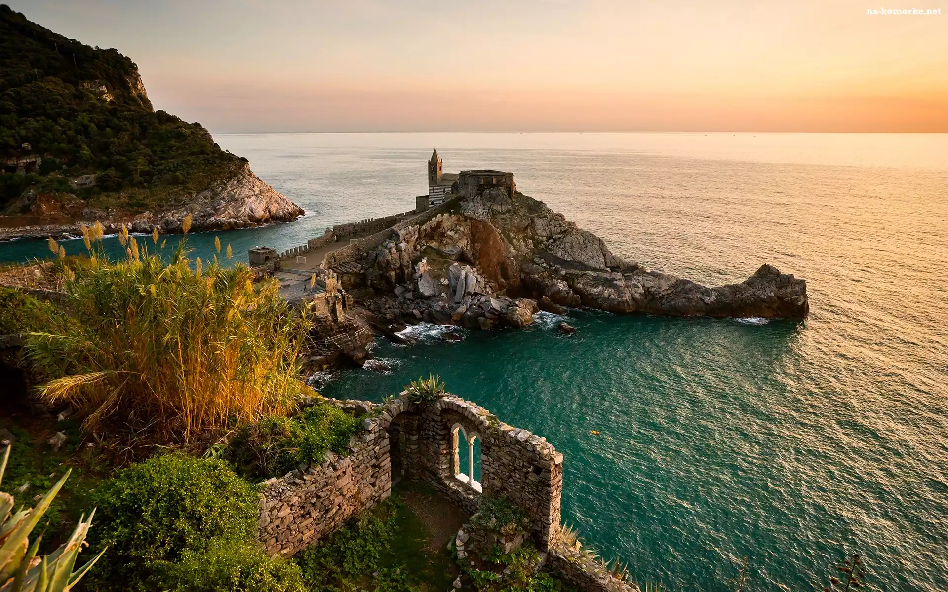 Miasteczko Portovenere, Liguria, Kościół św Piotra, Włochy, Chiesa di San Pietro, Wybrzeże, Morze Liguryjskie, Skały na Komórkę |