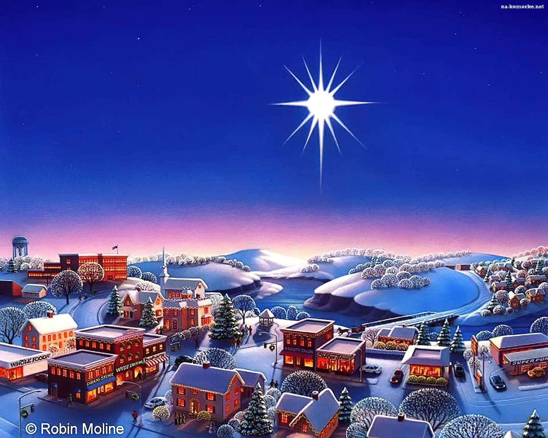 Miasteczko, Noc, Zima, Gwiazda na Komórkę