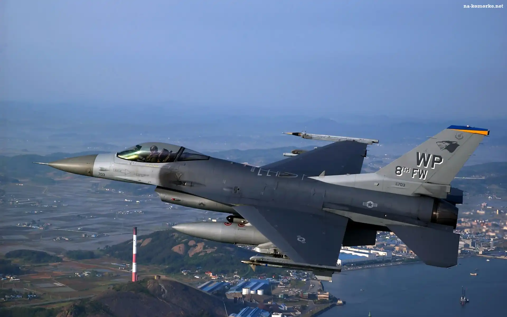Miastem, Niebo, F-16, Przelot, Nad na Komórkę