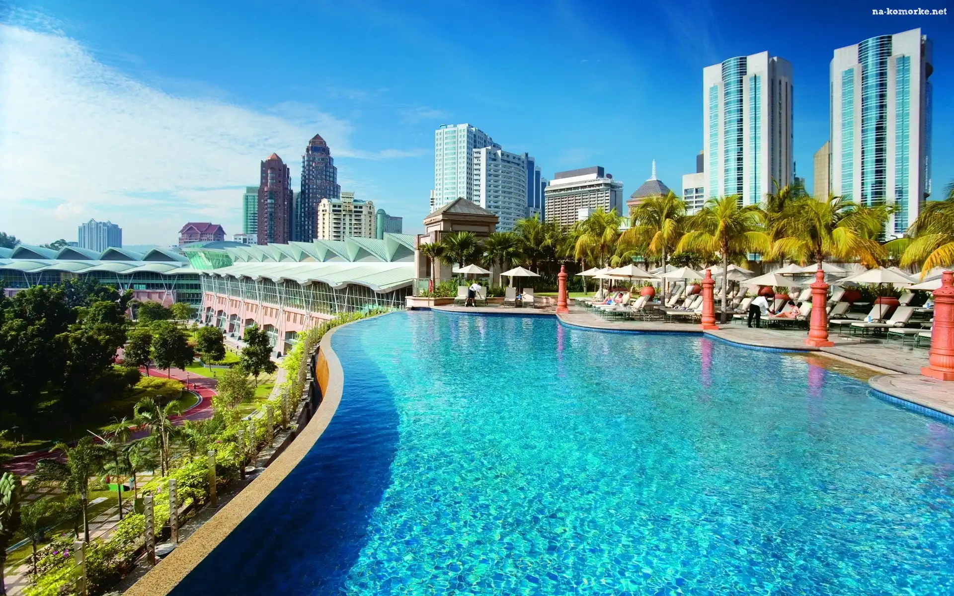 Miasto, Niebo, Basen, Palmy na Komórkę